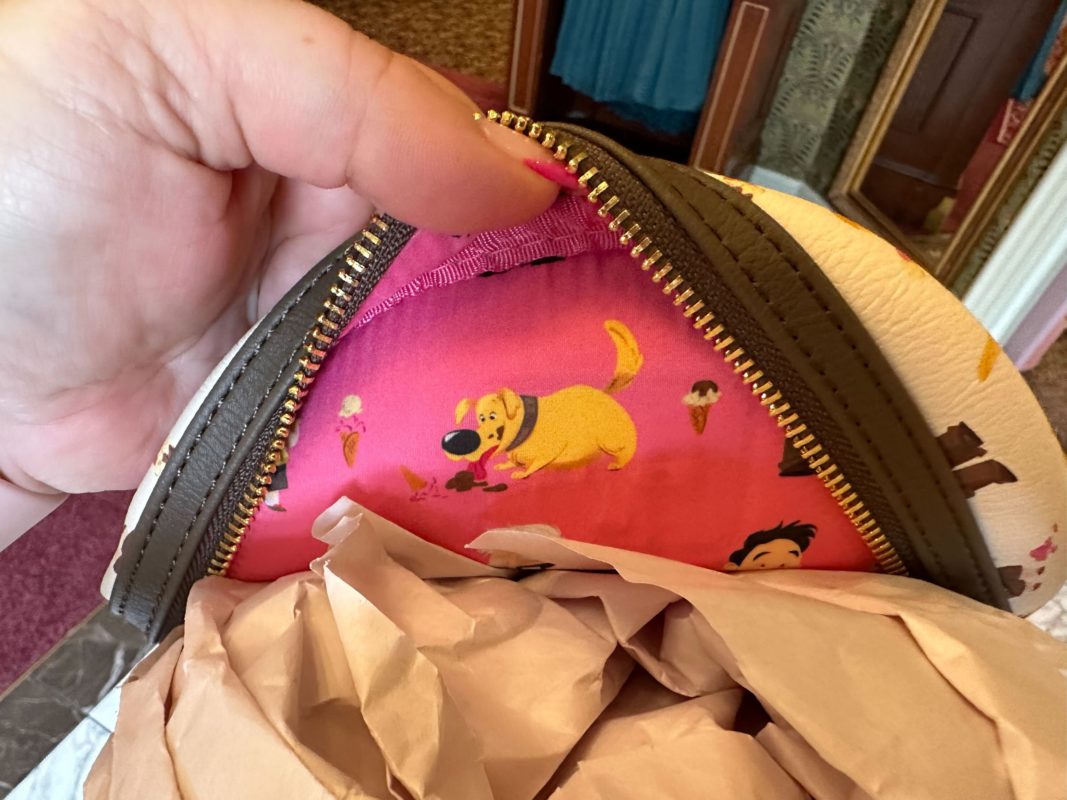 The backpack is inspired by the final scene of the film (before the credits) when Dug, Russell, and Carl are eating ice cream together outside an ice cream shop.