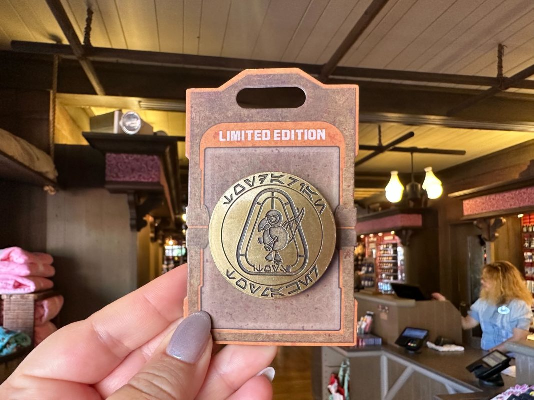 The latest pin in the Black Spire Outpost locations series for Star Wars: Galaxy’s Edge at Disney’s Hollywood Studios features Toydarian Toymaker. We found the pin, however, at Frontier Trading Post in Magic Kingdom.