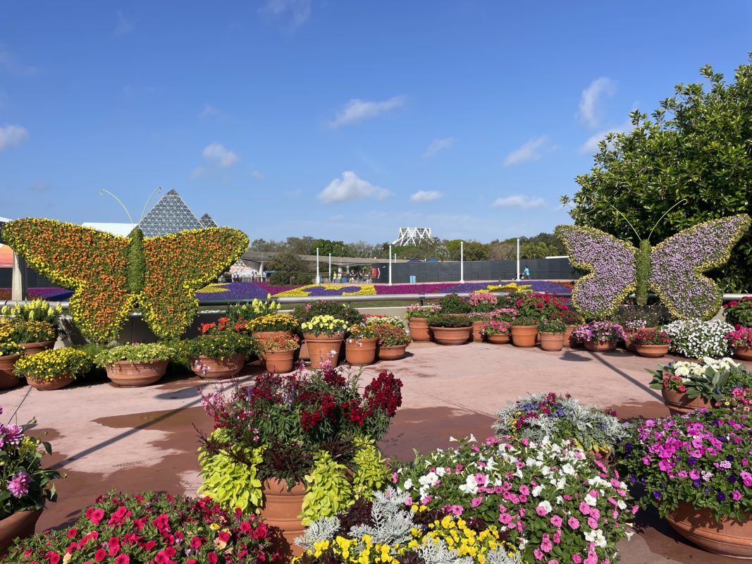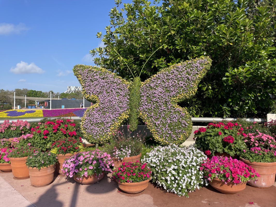 Butterfly topiaries have been placed in the World Showcase Promenade.