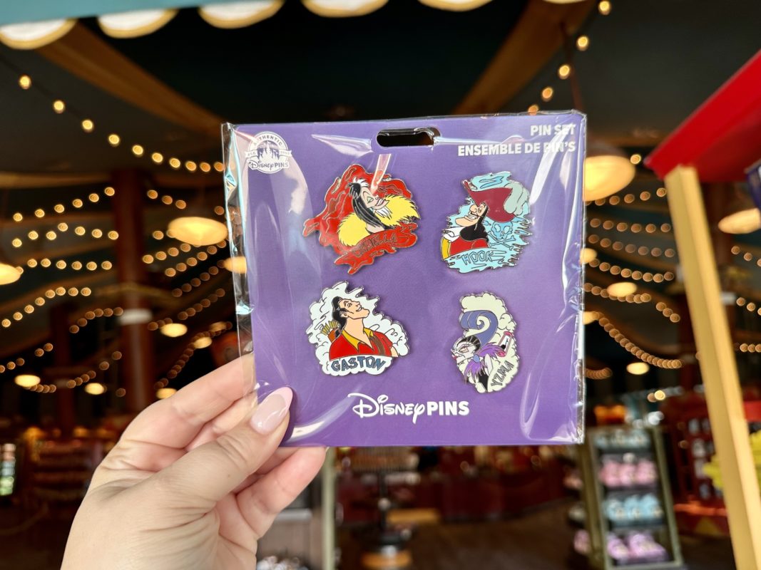 In Bigtop Souvenirs a new Villain pin set is now available. This open edition pin set features Cruella, Captain Hook, Gaston and Yzma.