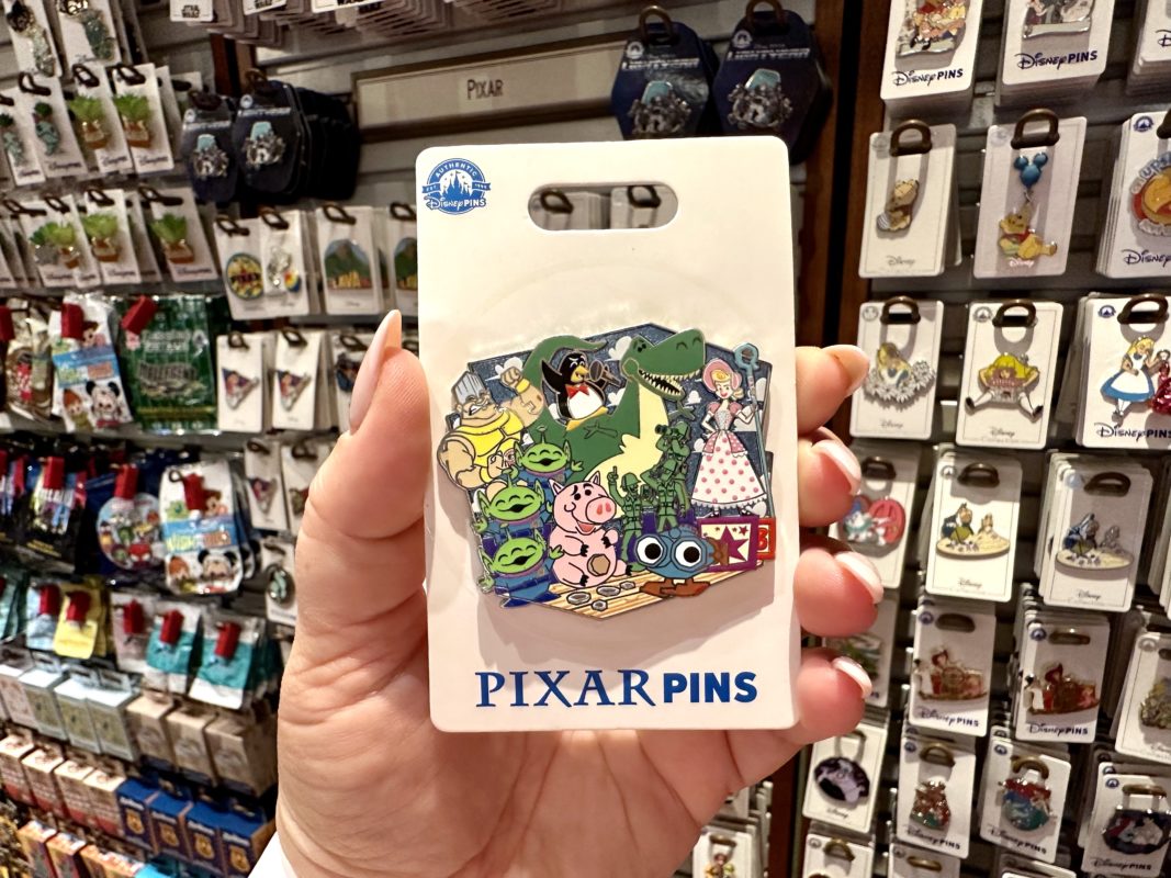 There were a lot of new pins released in the parks today. The first is an open edition “Toy Story” family pin. This pin features many characters from “Toy Story.”