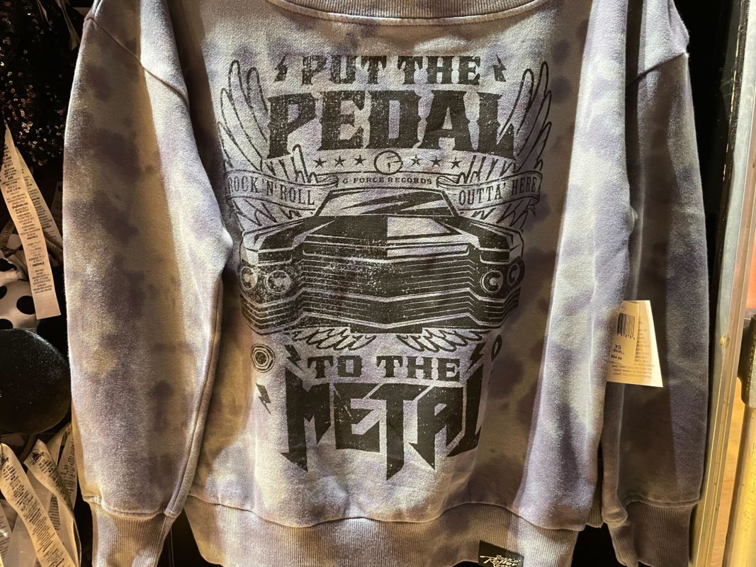 The pullover features the design from the other recently released pin, reading, “Put the pedal to the metal” around a winged limo.