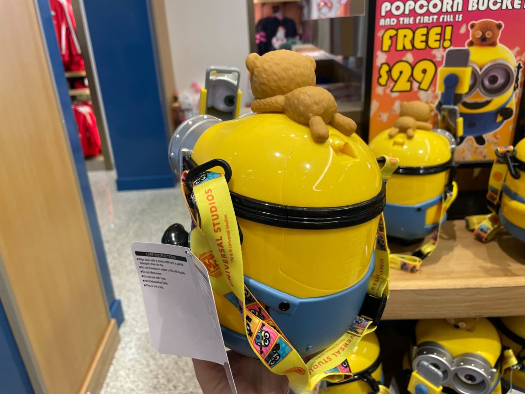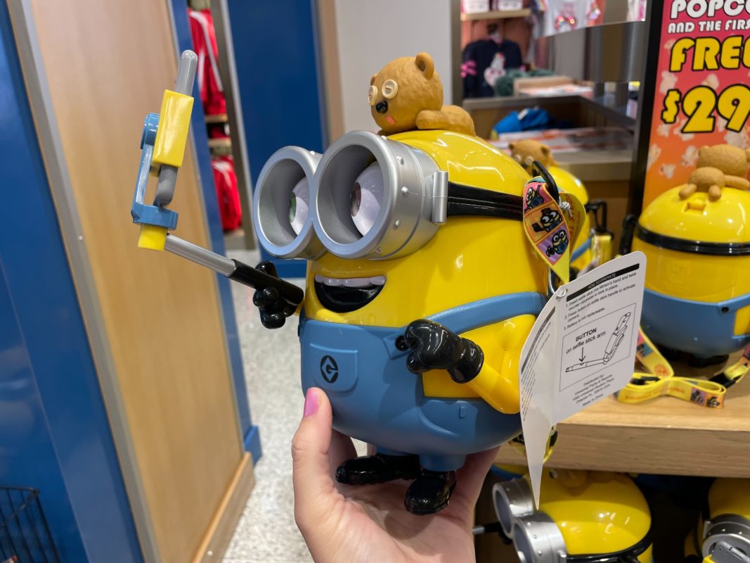 A new Minion popcorn bucket is available at Universal Orlando Resort. This one resembles a Minion taking a picture with a selfie stick.