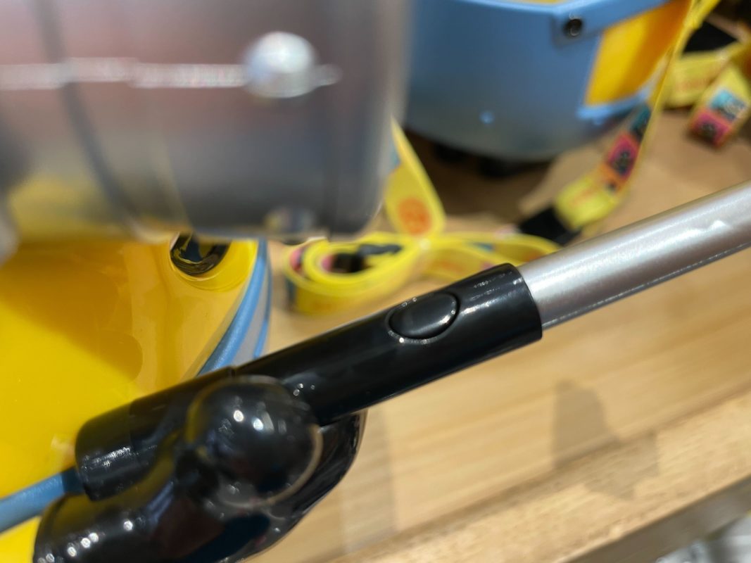 There’s a real button on the handle of the selfie stick. When pressed, there’s a camera click sound effect.