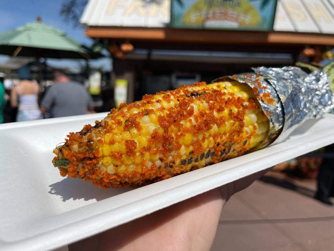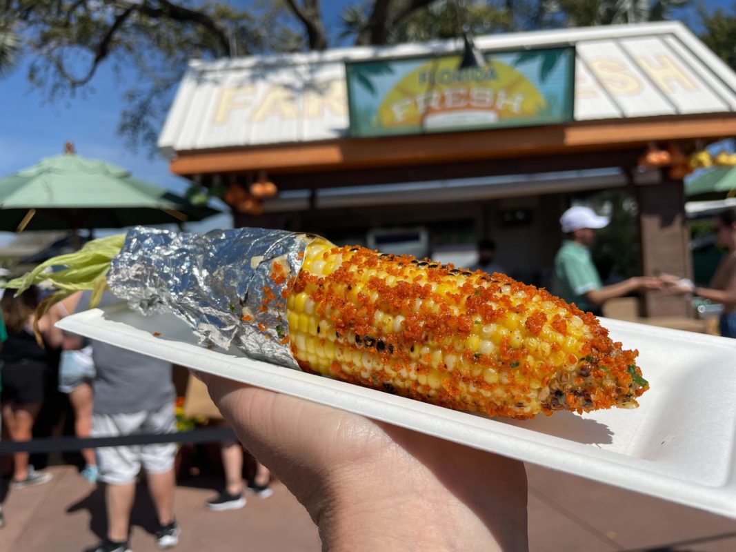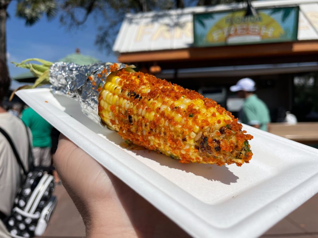 - Grilled Street Corn on the Cob with savory garlic spread and spicy corn chips – located at Florida Fresh