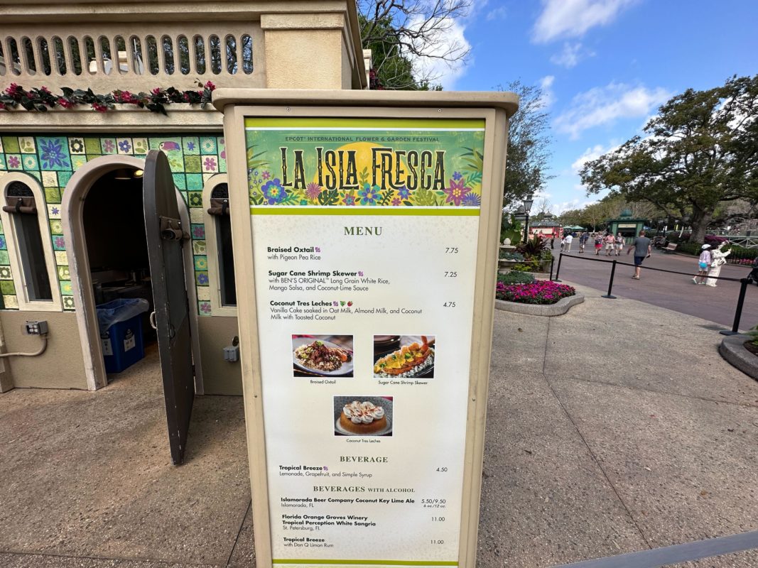 Menu for La Isla Fresca at the 2023 EPCOT International Flower & Garden Festival