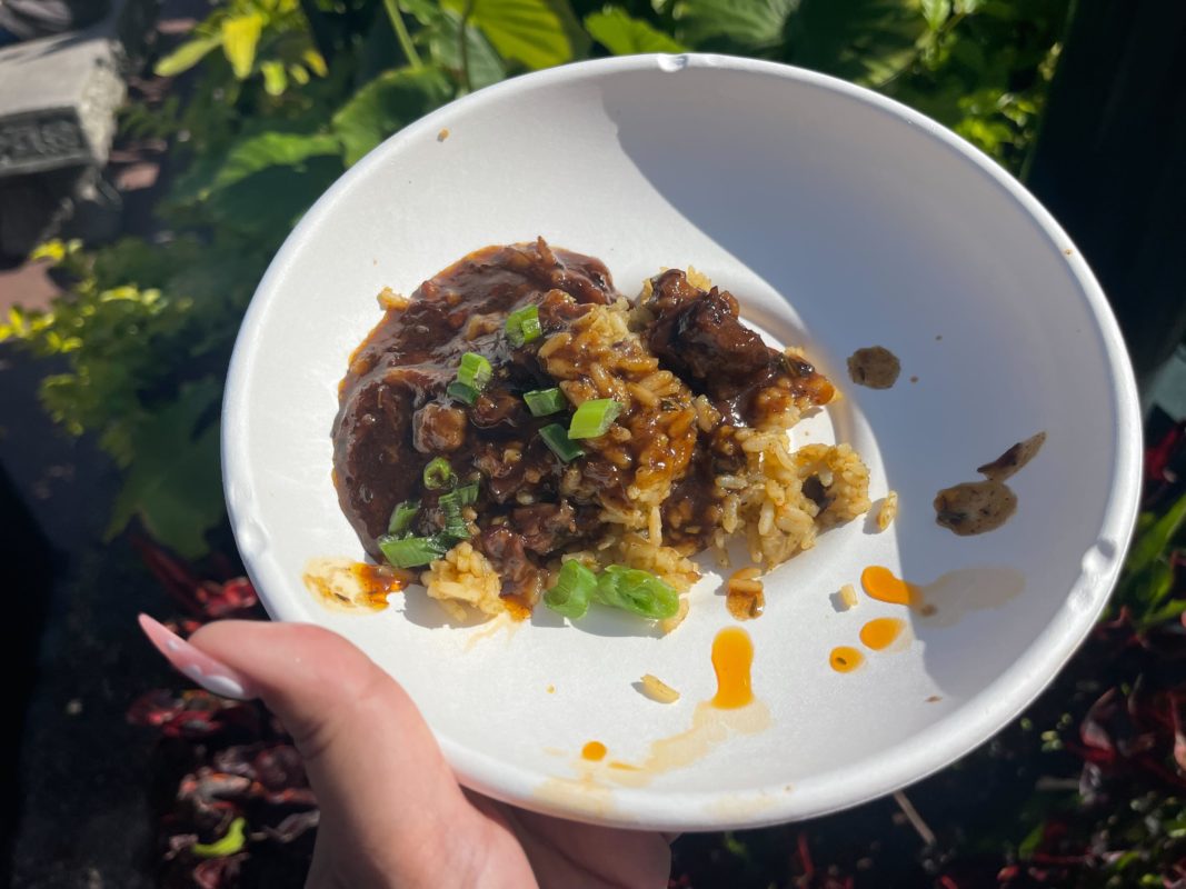 The braised oxtail is fatty. There isn’t a lot of sauce, and it doesn’t give the dish a lot of flavor. It tastes like a basic teriyaki sauce, but it’s too salty. The rice is nothing extraordinary, it just kind of exists. This reminds us of a microwaveable meal. We wouldn’t get this again.