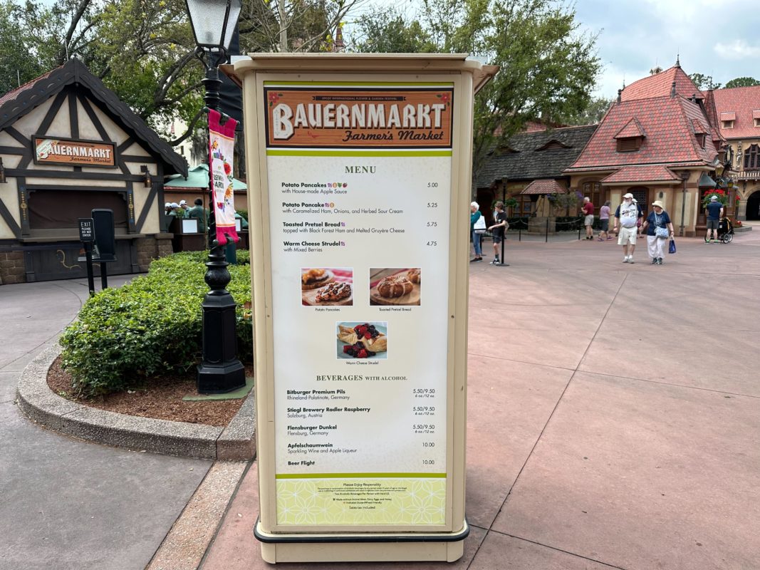 “Venture to Germany for Bavarian bites sure to sate foodies of all ages. Every dish is köstlich!” is how Bauernmarkt: Farmer’s Market is described for the 2023 EPCOT International Flower & Garden Festival. While the menu hasn’t changed much since last year, there is a new beer available along with the classic favorite dishes.
