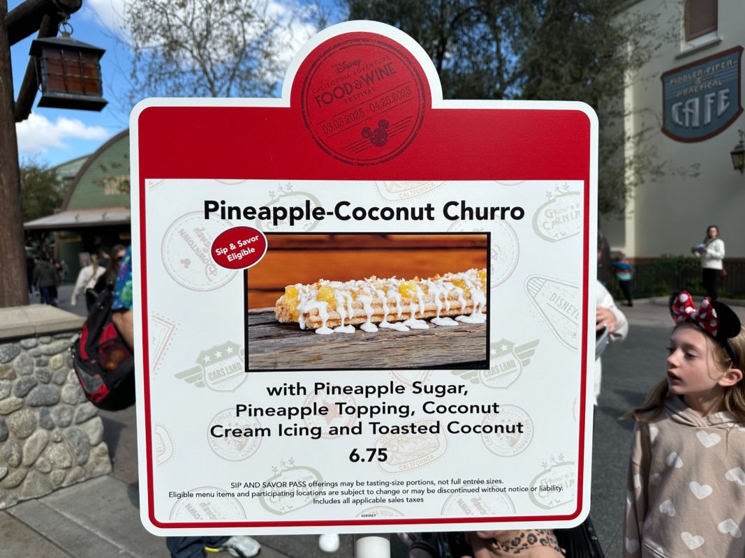 The 2023 Disney California Adventure Food & Wine Festival has three new churros available. At Willie’s Churros on Buena Vista Street, you can find the Pineapple-Coconut Churro. So naturally, we stopped by for a try!