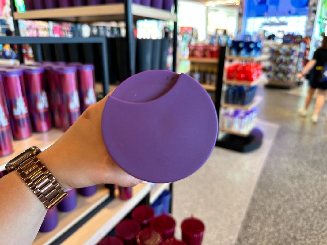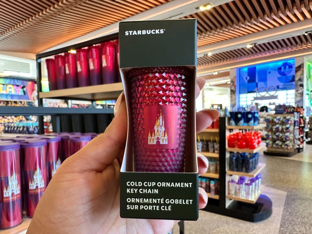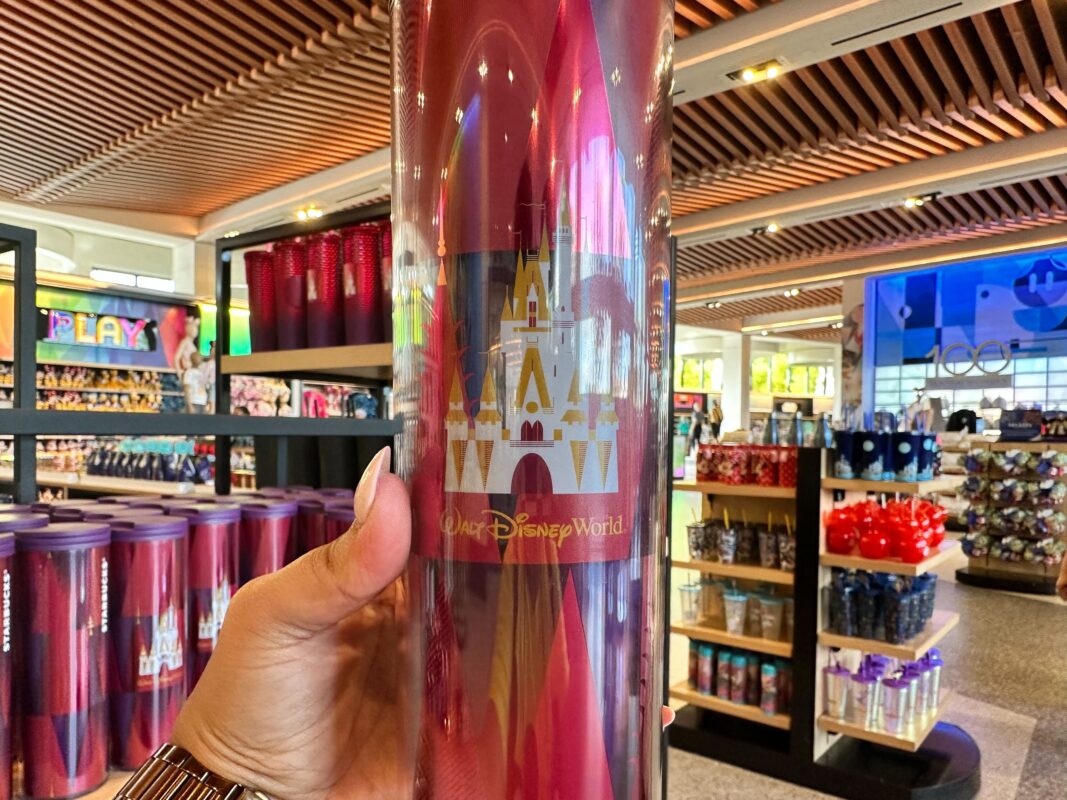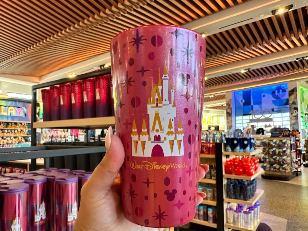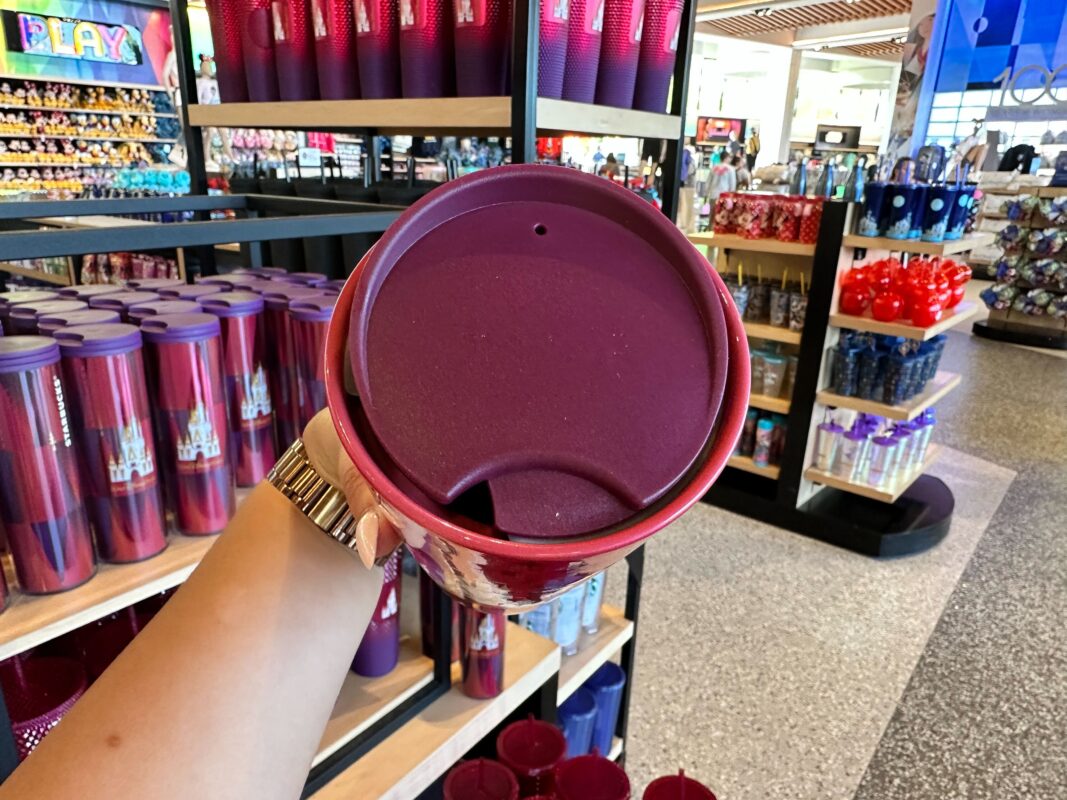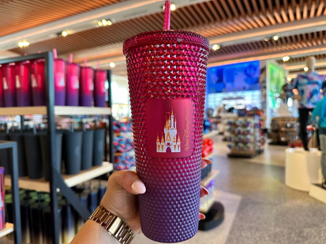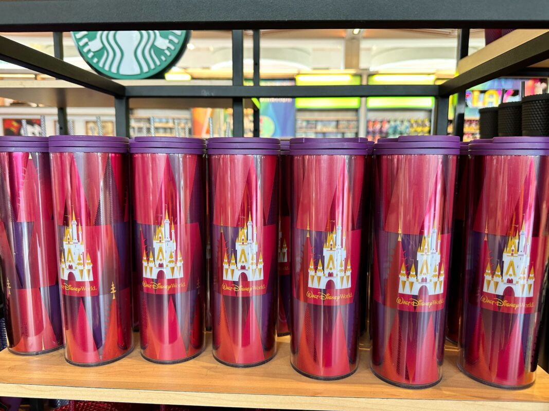 The items in this collection feature berry-toned hues across different drinkware and accessories. A display featuring the new merchandise is available to peruse at Creations Shop in EPCOT.