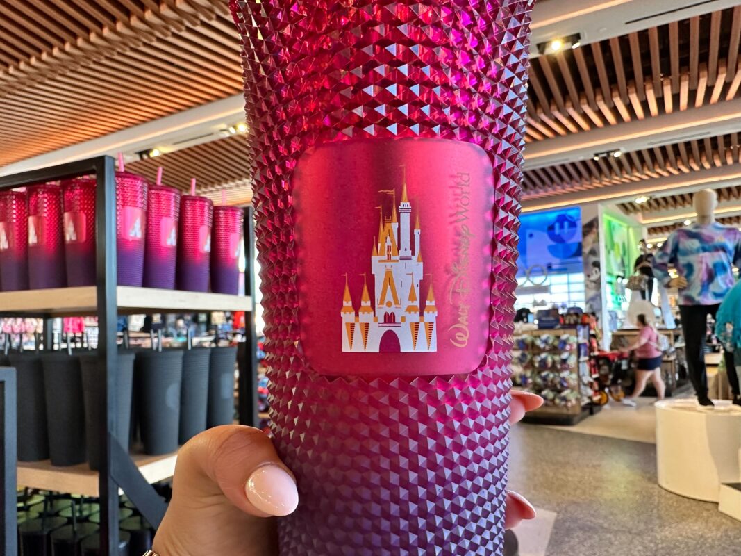 The tumbler has a shimmery finish, and Cinderella Castle is front and center.