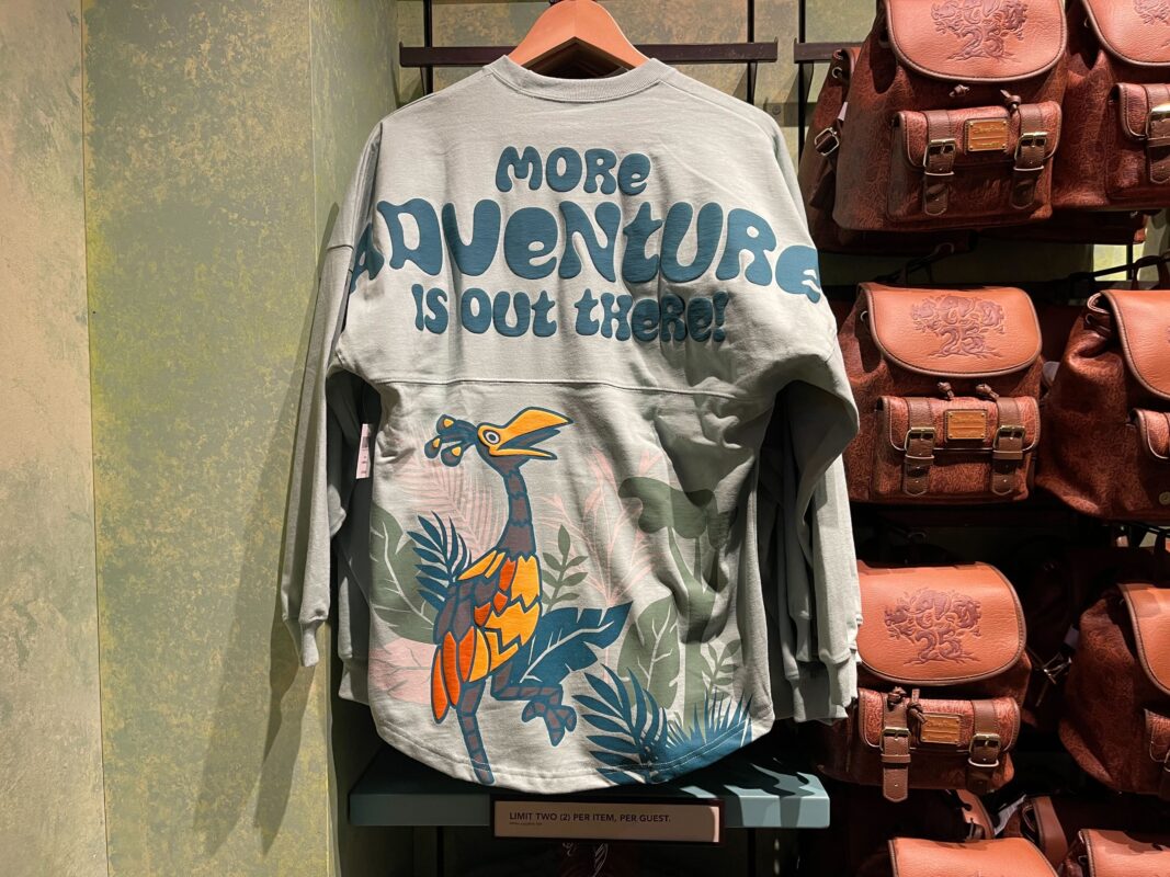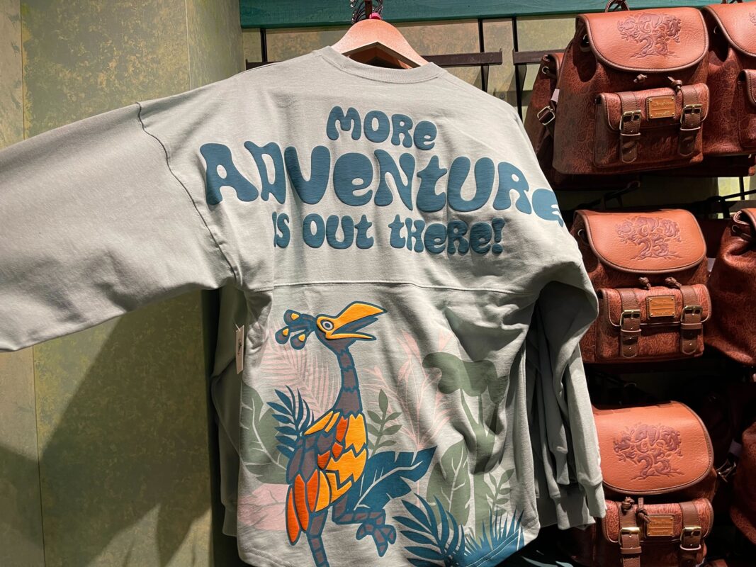 “More adventure is out there!” is across the back shoulders in blue bubble letters.