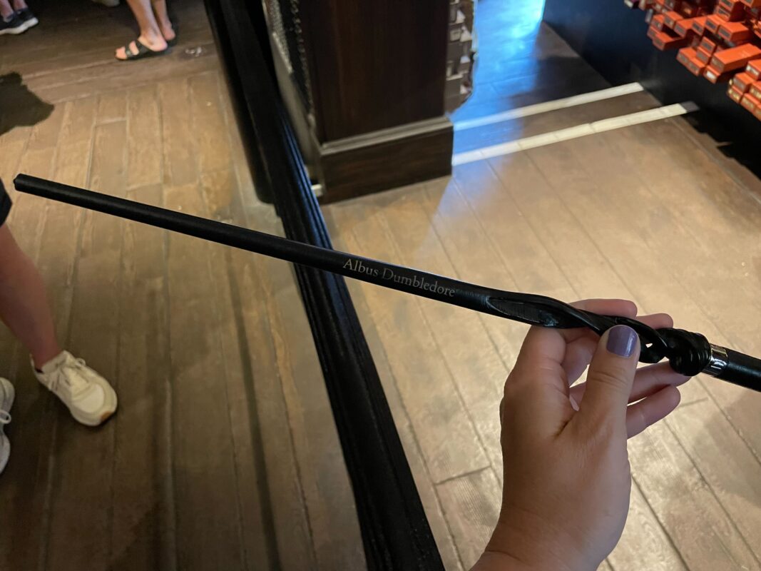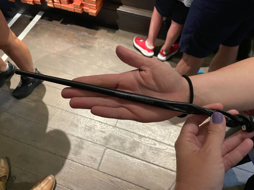 No engravings can be done on old Ollivanders originals, non-interactive, or poplar wands. All others are eligible. Guests may not engrave a wand they already possess, and any desired engravings must be ordered on the same day as their purchase. If anyone does purchase a wand and decides to return later in the day for an added engraving, they must retain and present the box and receipt.