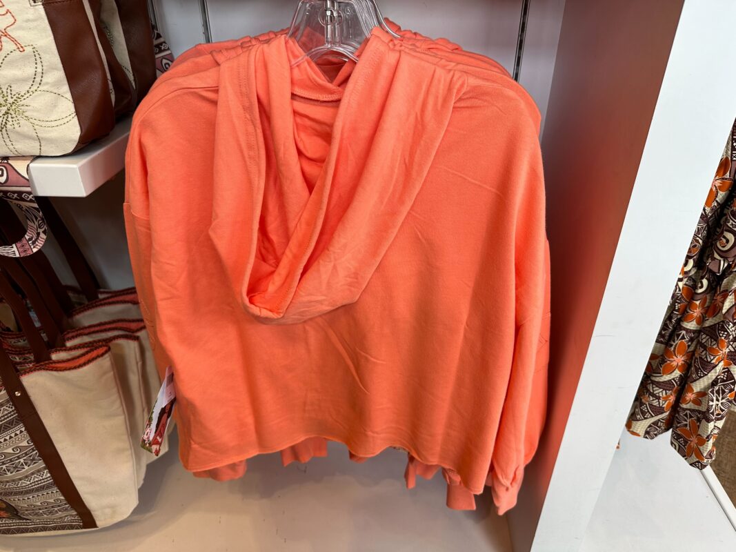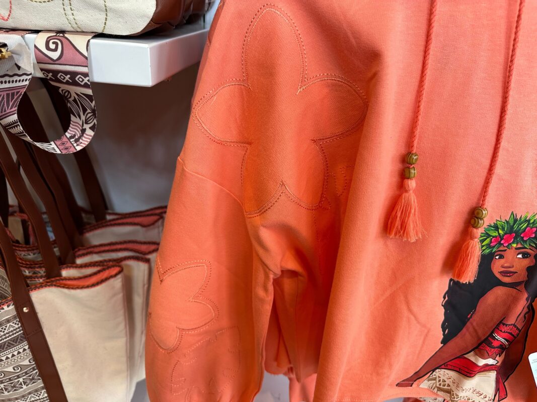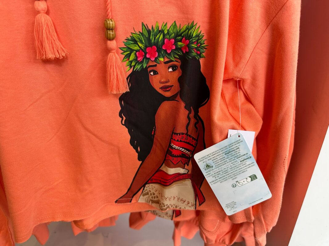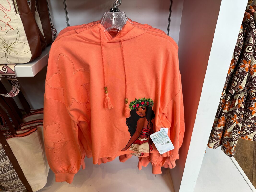 We found “Moana” kitchenware in Kingswell Camera Shop at Disney California Adventure. More merch was at Adventureland Bazaar in Disneyland and then a crop sweatshirt was in the Dress Shop at Downtown Disney District.