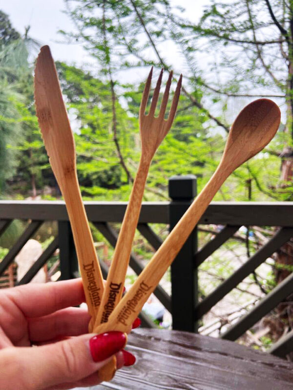 We found two versions of reusable utensils at Award Wieners in Disney California Adventure Park. Made of wood, these utensils are limited to one per person per transaction. They are available in two designs, one of which is Magic Key Pass exclusive.