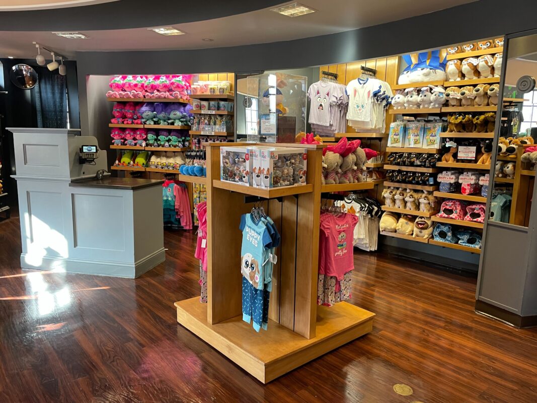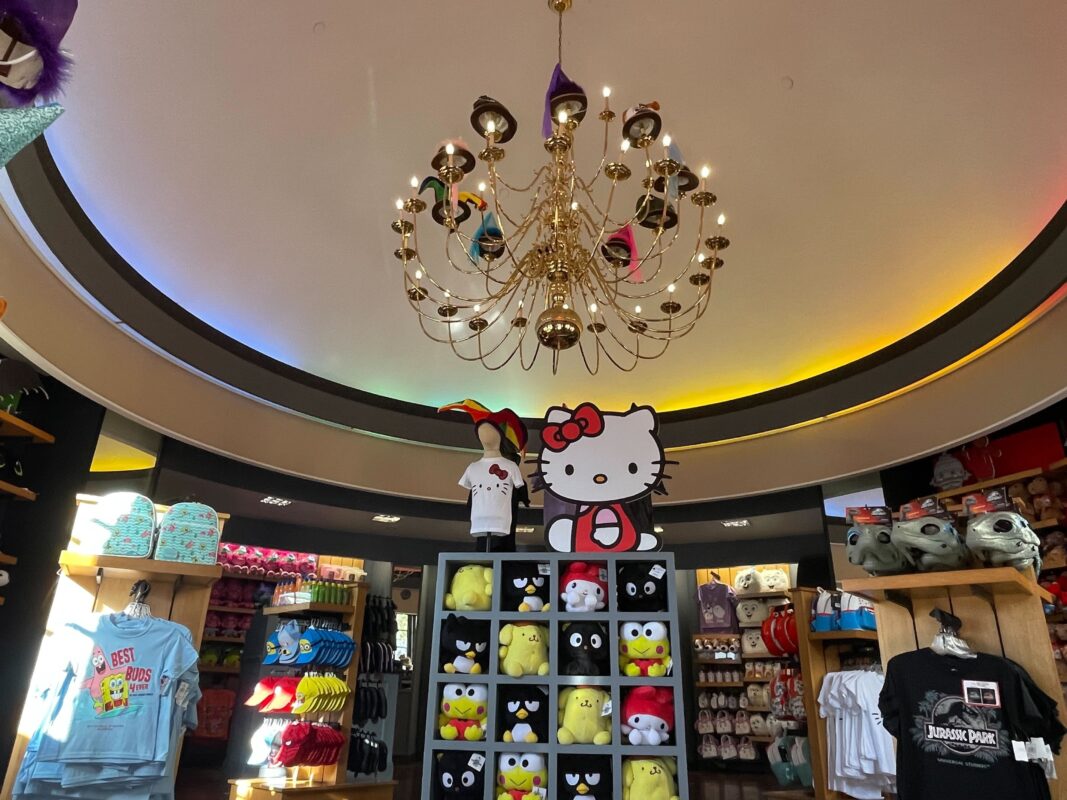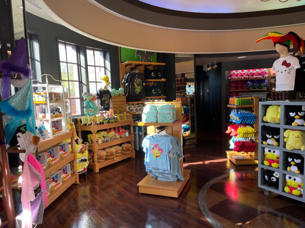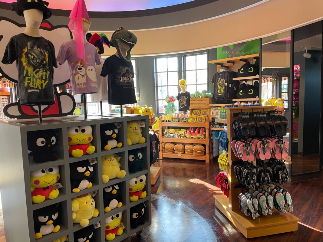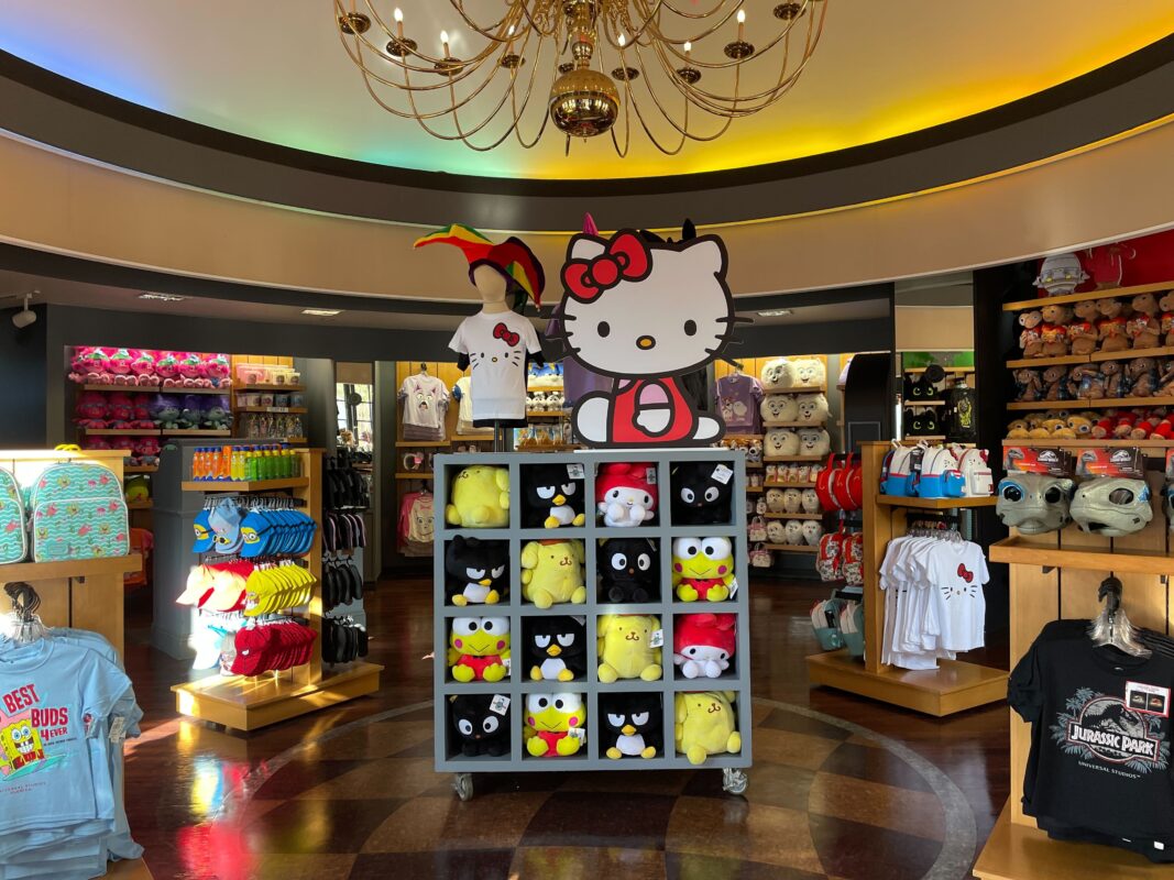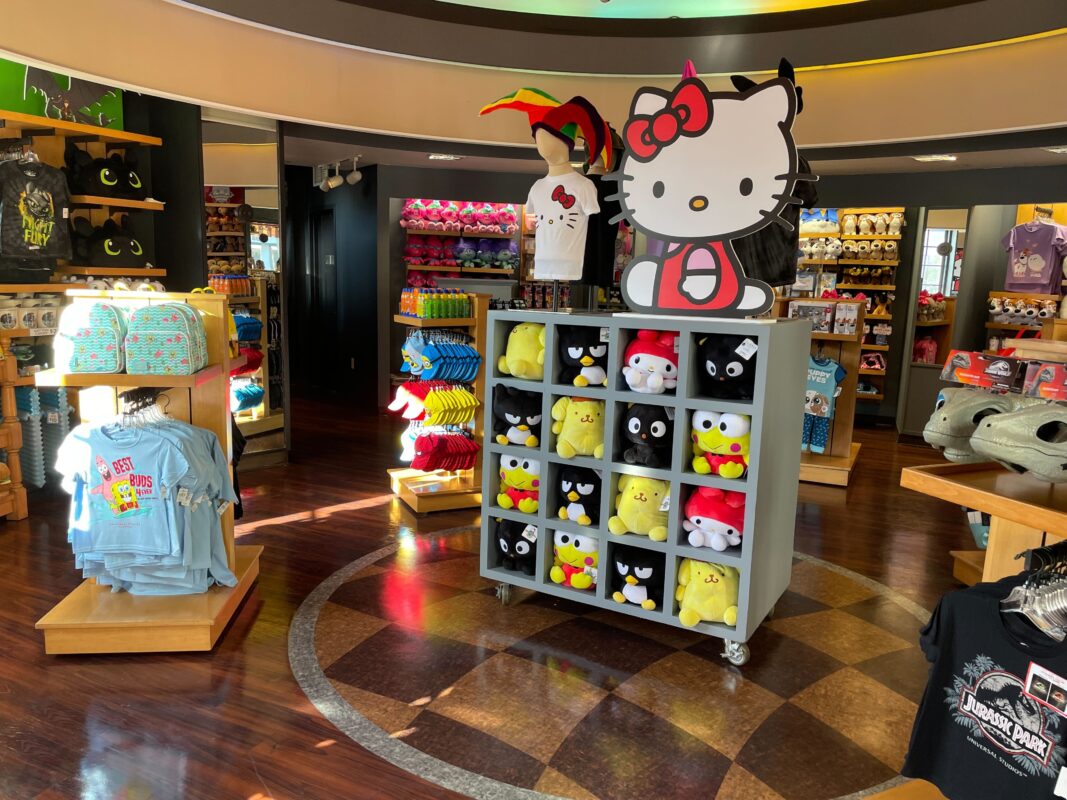 The store carries apparel in youth sizes plus accessories and toys. A Hello Kitty display sits front and center.