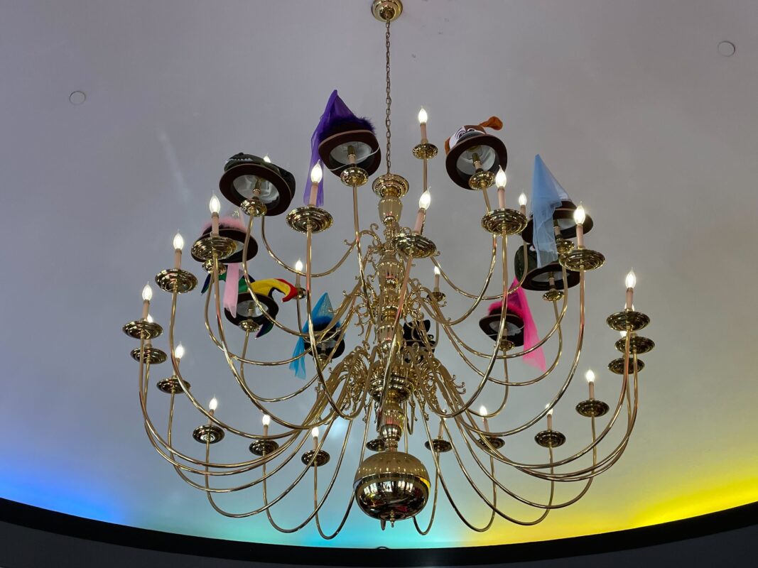 Here at UPNT, we love hats on lights, so we were glad to see the chandelier is adorned.