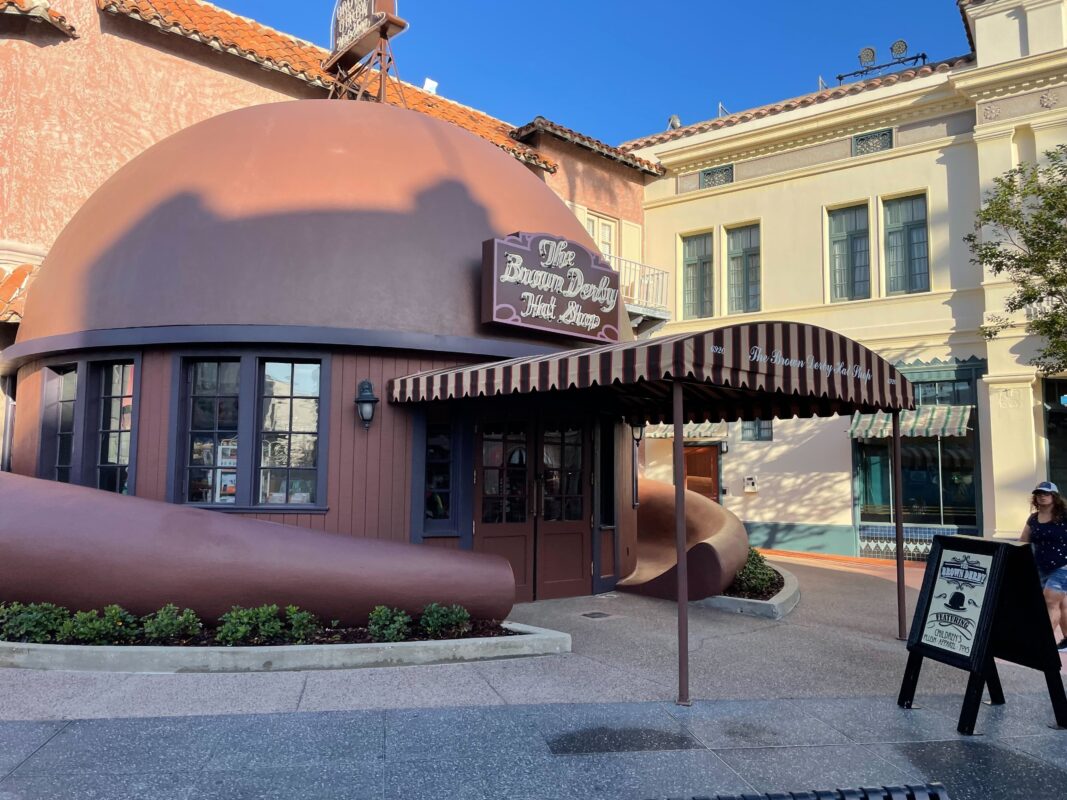 The Brown Derby Hat Shop has reopened at Universal Studios Florida, but it’s not selling hats. The last time the Brown Derby Hat Shop was open, it was used as a temporary prop shop, much like the former Williams of Hollywood location, which closed last year. Now, the Brown Derby Hat Shop has reopened with a new look inside. Let’s take a look around the shop!