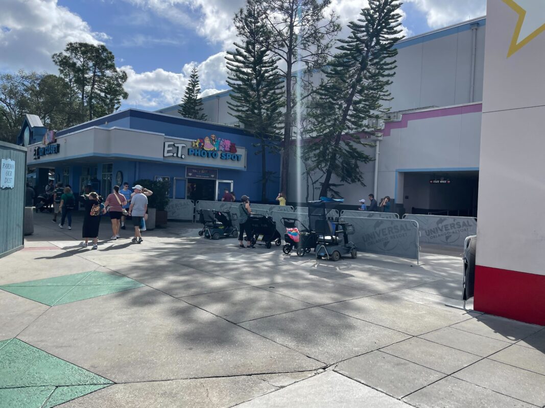 Deforestation at the E.T. Adventure! The trees and planters at the exit of the E.T. Adventure are gone and the open area is now designated for stroller parking. The trees in the area added a lot of beauty to the attraction, so we will miss them.