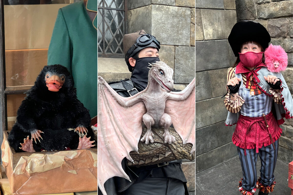 Starting last month, Universal Studios Japan introduced a slate of new Magical Creatures greetings around Hogsmeade within The Wizarding World of Harry Potter. Guests can enjoy a short skit by a magical creature expert followed by lots of photos and even the chance to pet the creatures all day long with a Niffler, a Pygmy Puff, and a baby dragon! So we stopped in to enjoy the experience for ourselves.