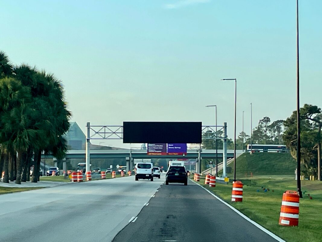 - Another new digital road sign has been installed above World Drive.