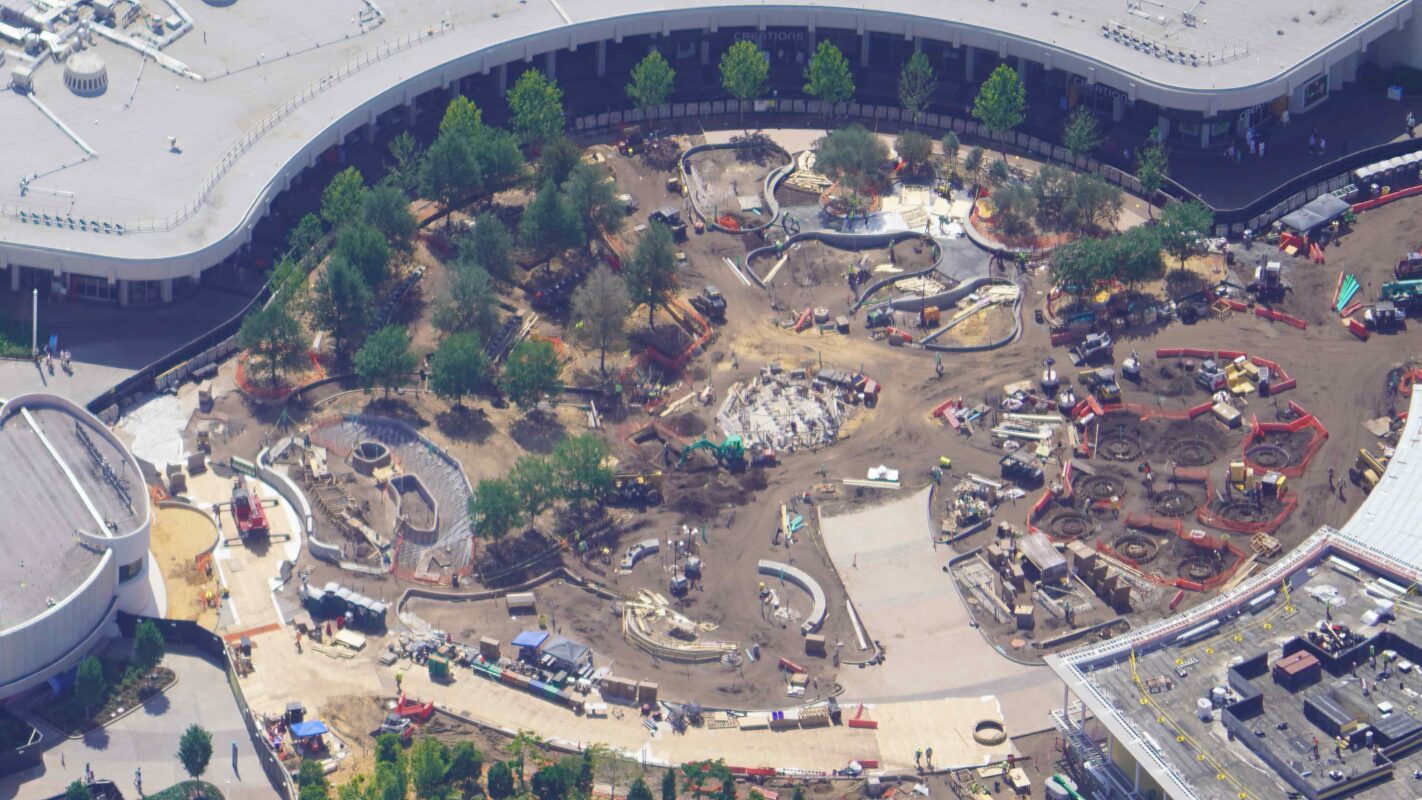 - We got an aerial look at the construction site for Dreamer’s Point, CommuniCore Hall, and the Journey of Water today.