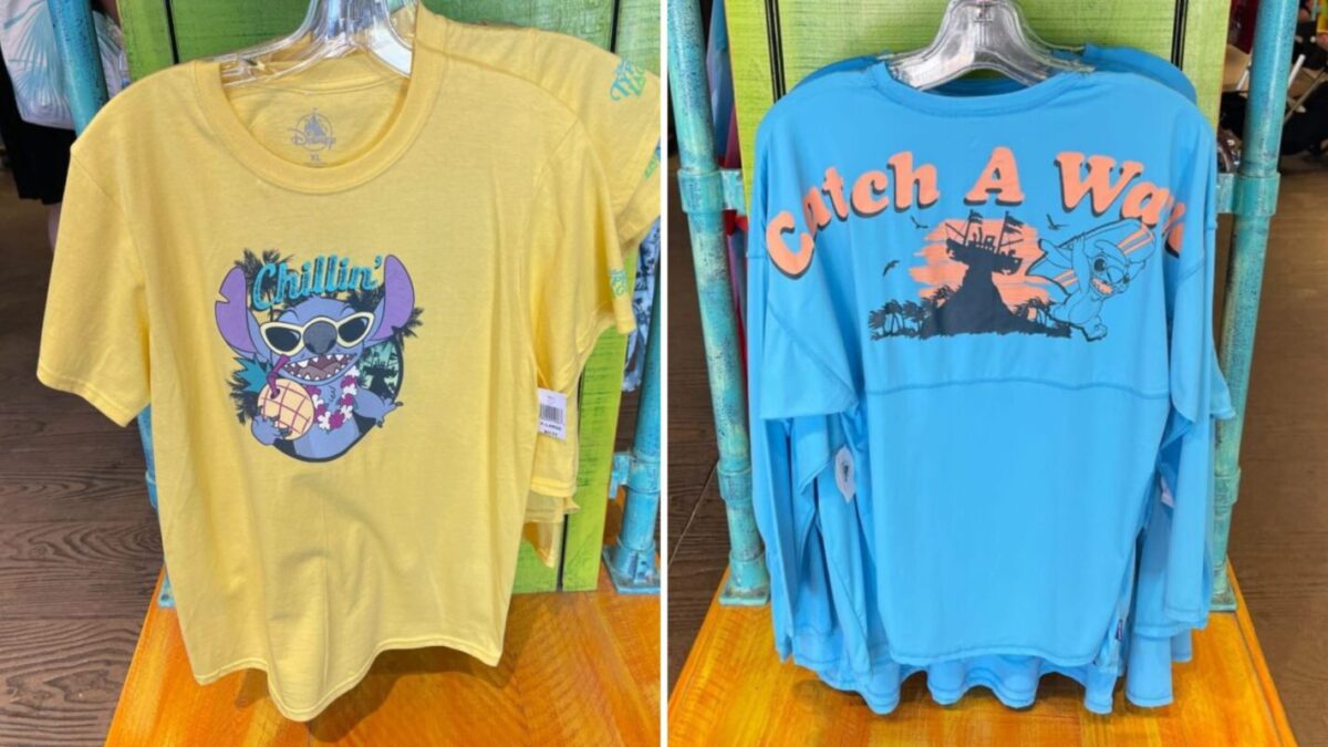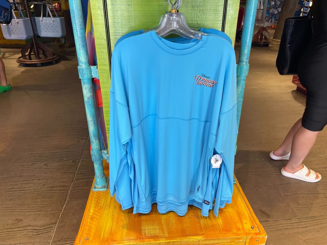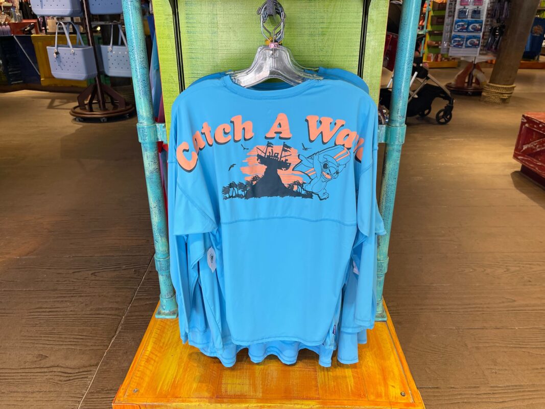 A new youth Stitch shirt and a rash guard Spirit Jersey with UV protection are available at Disney’s Typhoon Lagoon water park. These can be found at Singapore Sal’s, where we also found the new Crush ‘n’ Gusher shirt.