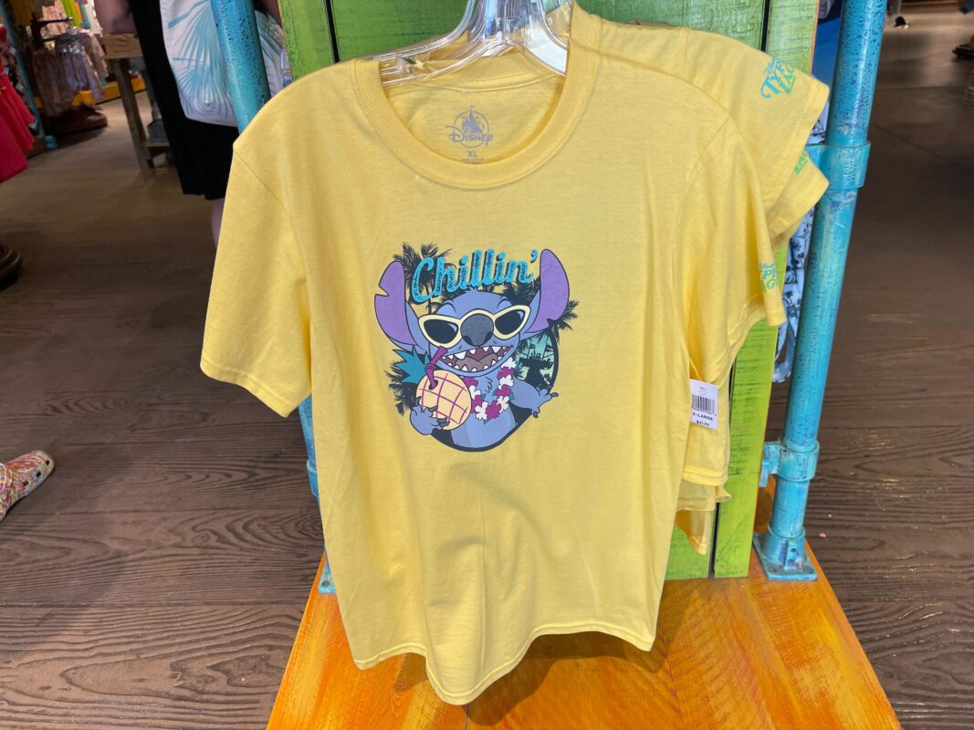 This shirt is yellow, with Stitch “Chillin'” on the front.