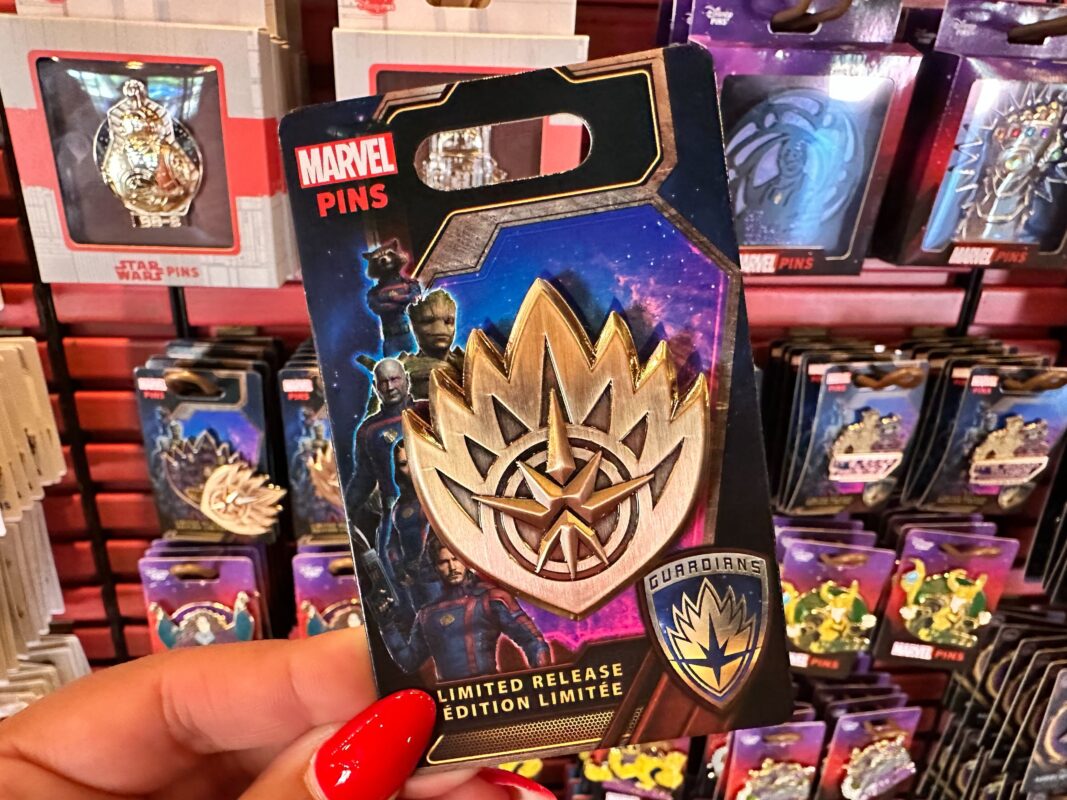 This limited release features a three-dimensional Guardians of the Galaxy logo on the front of a hinged pin.