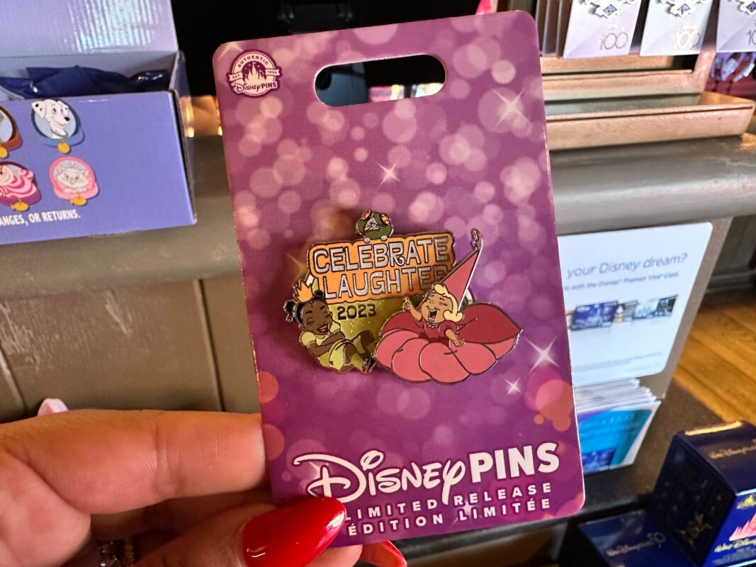 This pin recalls a scene from “The Princess and the Frog” and reads: “Celebrate Laughter.”