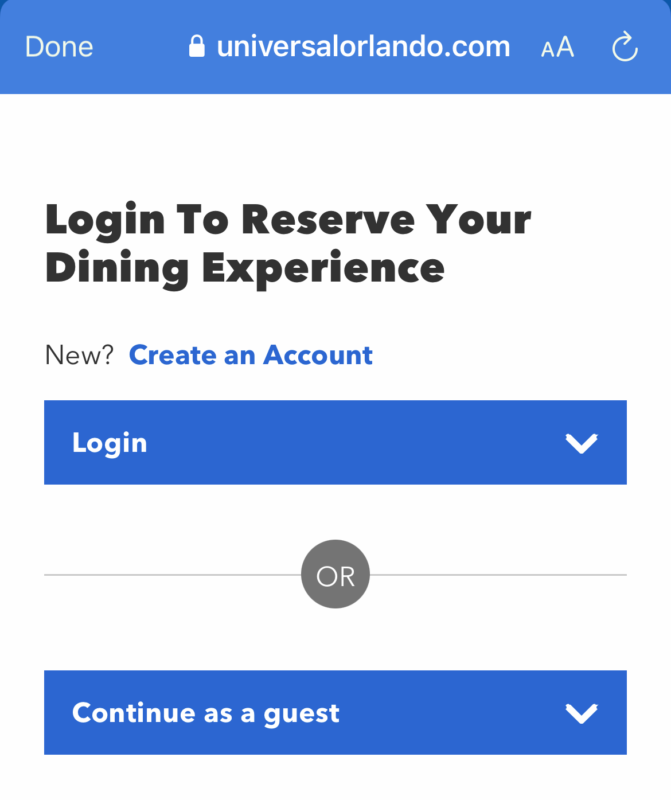 You then must login to your Universal Orlando Resort account or continue as a guest.
