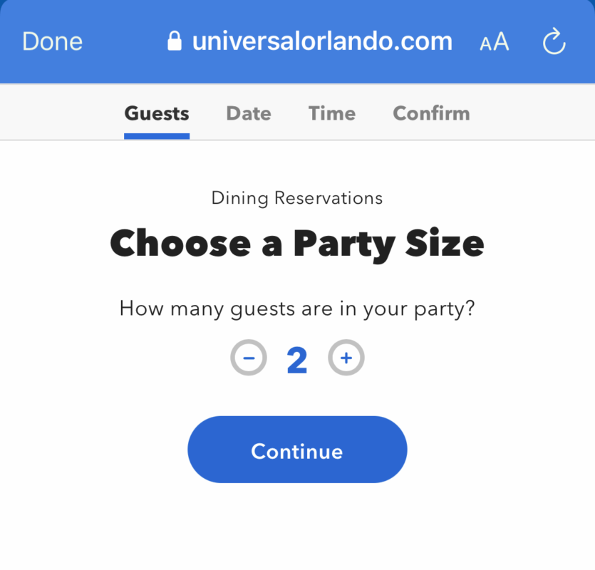 After that, you can select your party size.