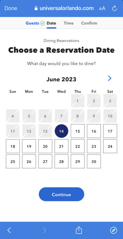 Then you can review the number of guests, date, and time.