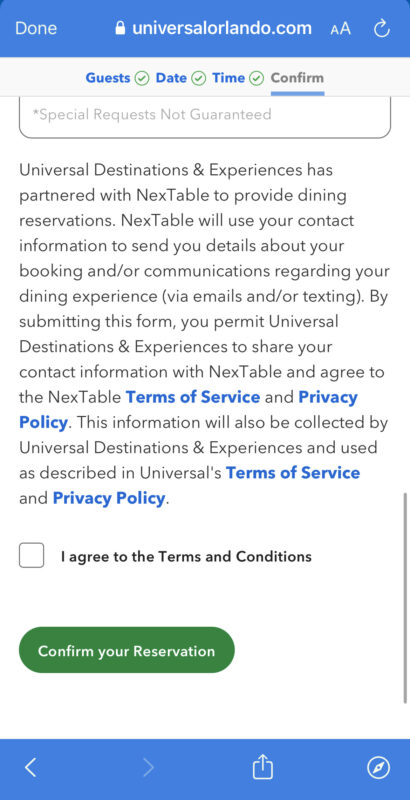 You then just click the box to agree to the terms and conditions and confirm your reservation.
