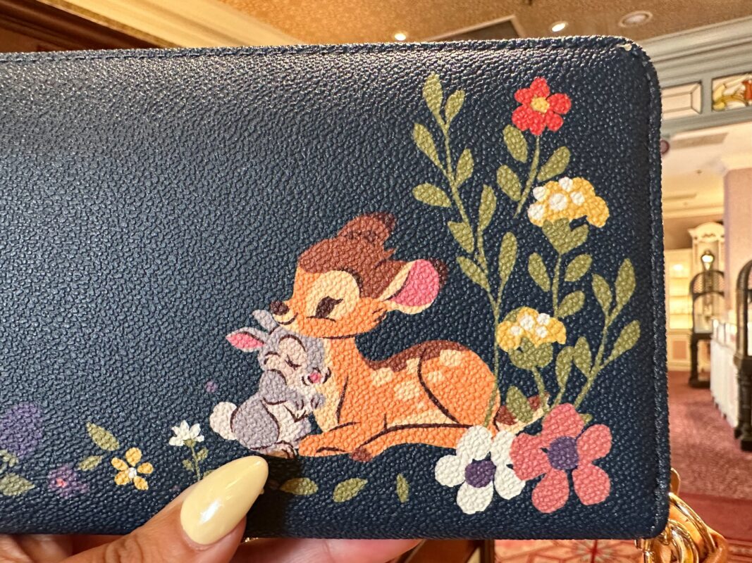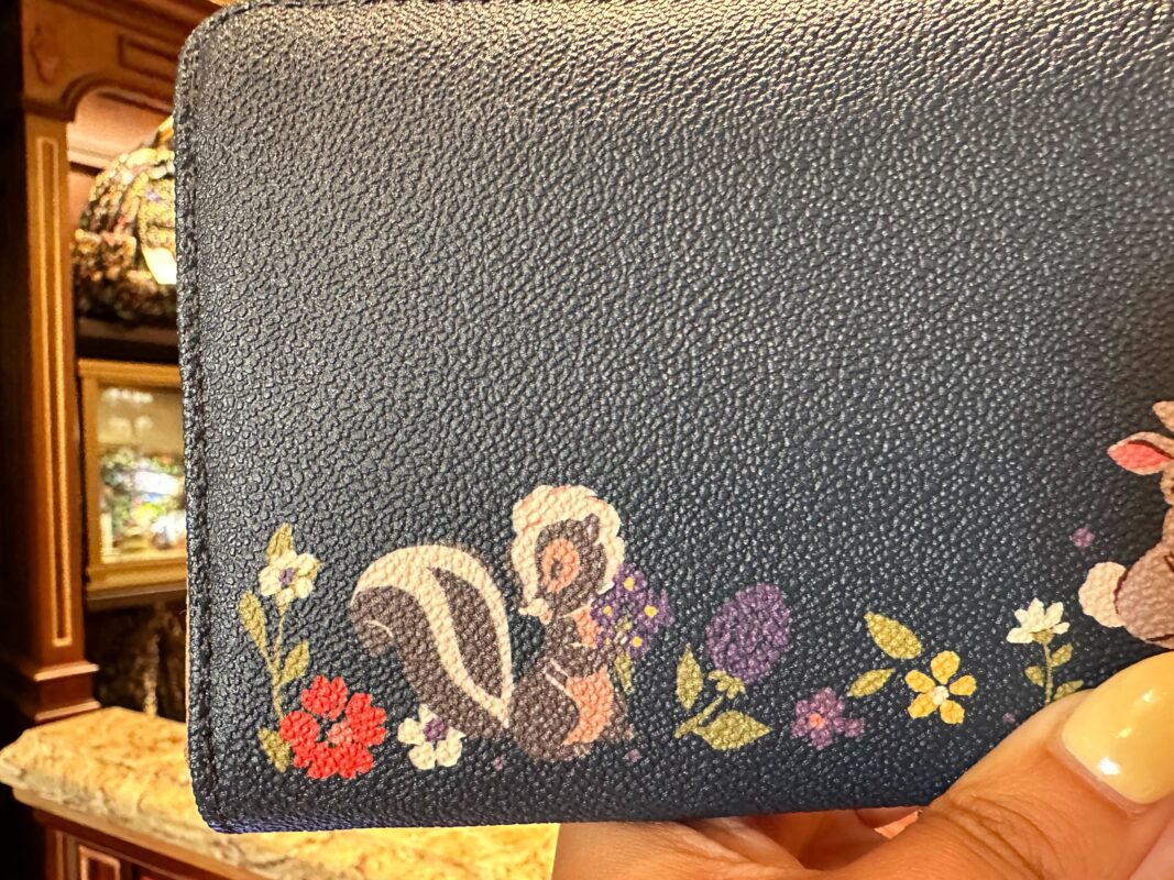 Bambi and Thumper cuddle amongst some foliage. Flower smiles nearby on the wallet’s graphic.