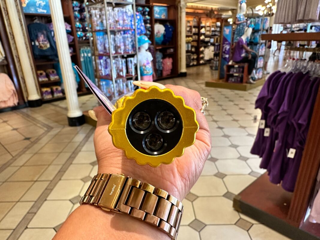 Lights are affixed on the bottom of the wand, which cast projections of Tinker Bell flying, as seen in the images below.