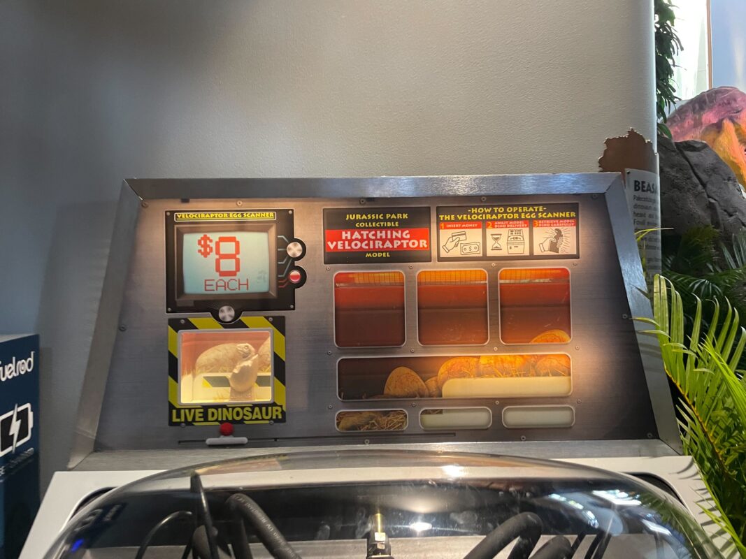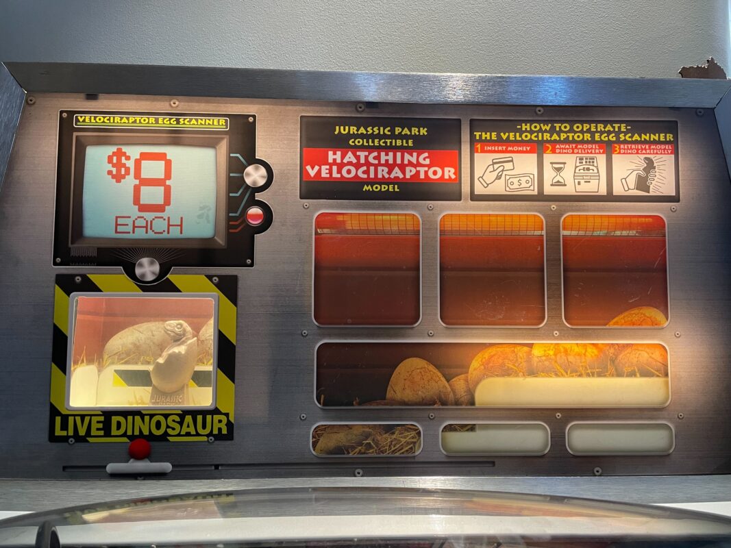 A new velociraptor egg Mold-A-Rama machine is available at the Jurassic Park Discovery Center in Universal’s Islands of Adventure.