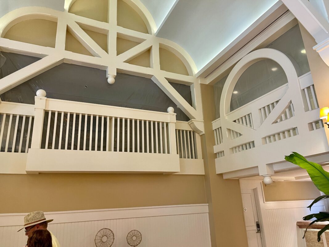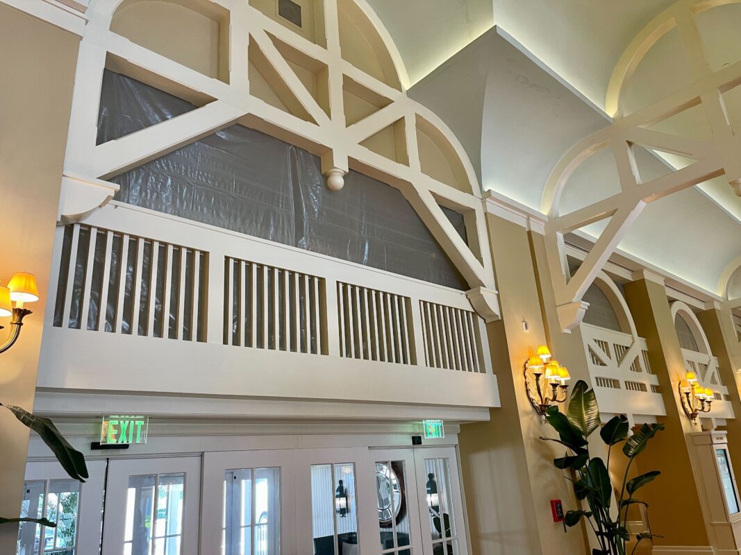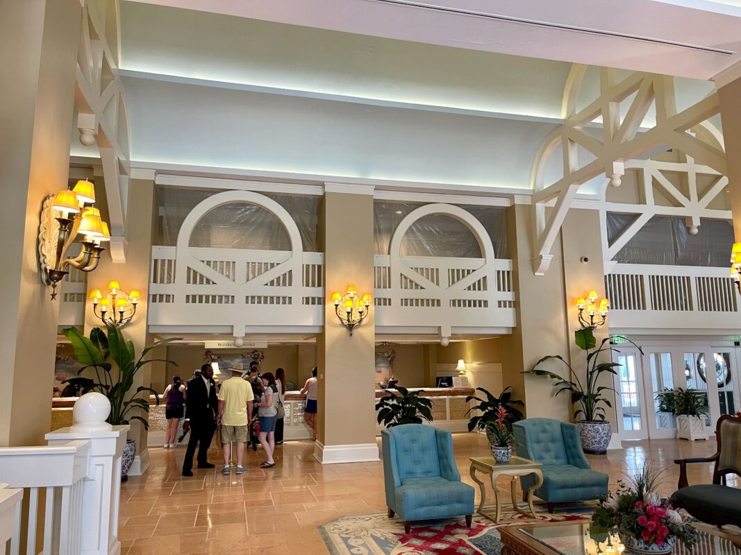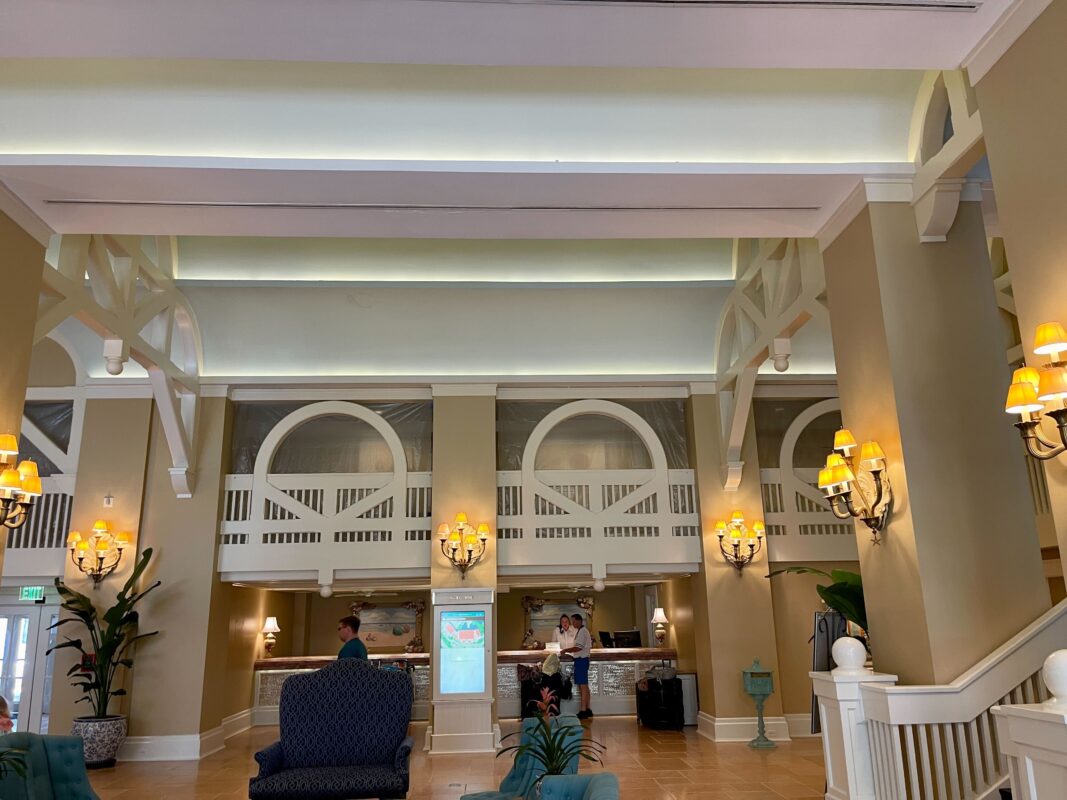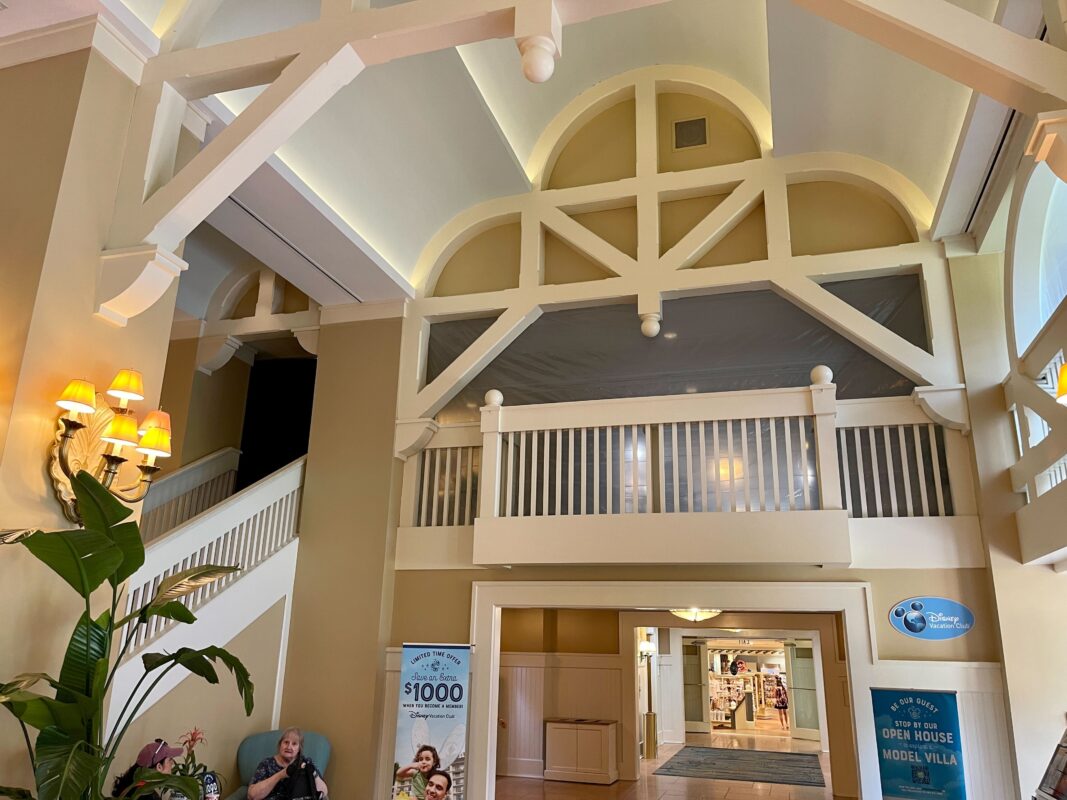Plastic sheets have been hung around the second floor of Disney’s Beach Club Resort lobby in preparation for refurbishment work at the hotel.