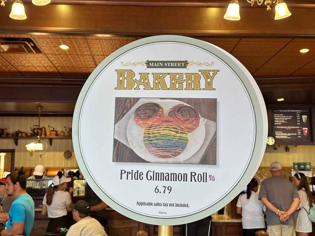 With Pride Month now upon us, a special Pride Cinnamon Roll is now available, for a limited time at the Magic Kingdom. This proud treat is available at the Main Street Bakery.