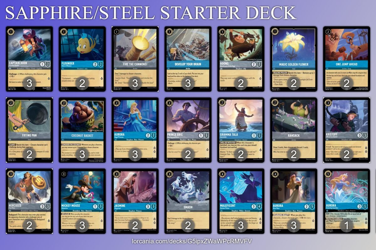 With the lists from TheGamer, LorcanaCast created visual guides for each starter deck.