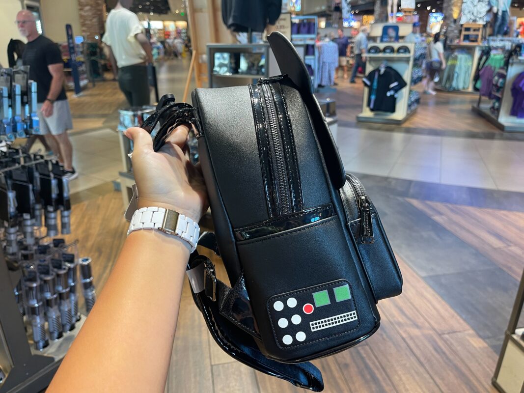 A new glow-in-the-dark “Star Wars” Darth Vader Loungefly mini backpack has arrived at Walt Disney World. We found it in World of Disney at Disney Springs.