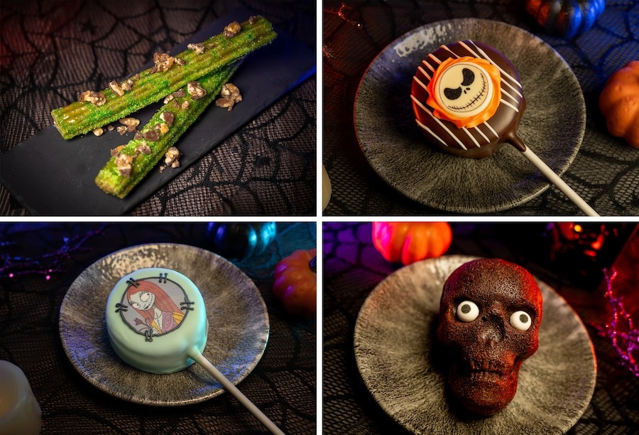 - Not-So-Poison Apple Churro: Churro rolled in green apple sugar, topped with SNICKERS bar pieces, and drizzled with caramel sauce (New) (Available Aug. 11 through Nov. 1 during regular park hours and Mickey’s Not-So-Scary Halloween Party)