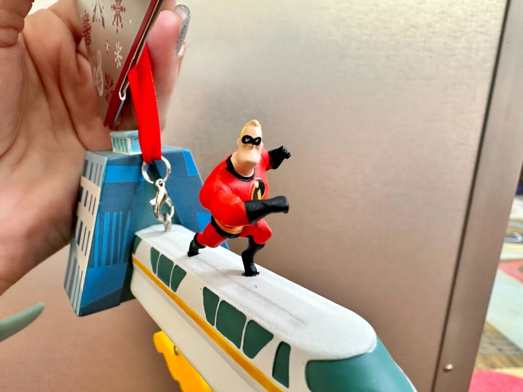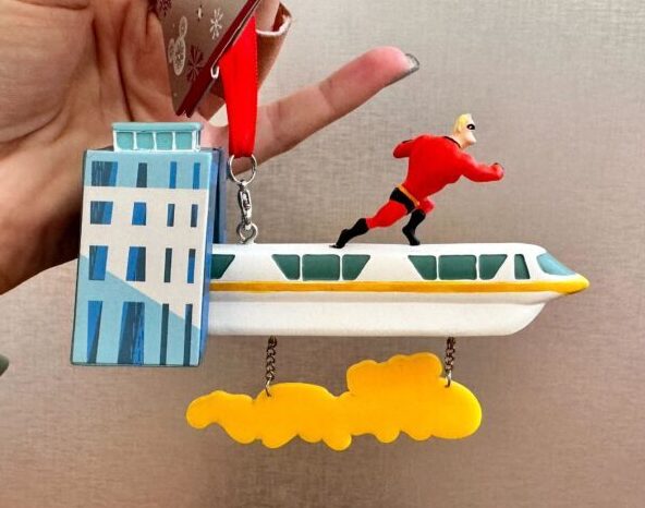 Not to be outdone by the slew of Sketchbook ornaments we found at the Magic Kingdom this week, BVG at Disney’s Contemporary Resort has released a new ornament of it’s own, with the Walt Disney World Monorail exiting the A-frame structure of the resort. The monorail also has imagery of The Incredibles, with Mr. Incredible himself running atop the monorail. These ornaments can also be used as display figures year-round as their ribbons are detachable.