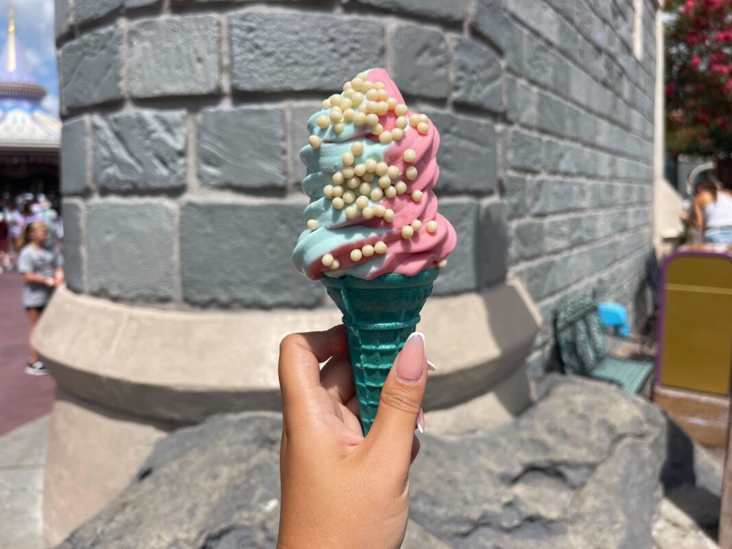 In addition to the Rapunzel Sundae, Storybook Treats also debuted the “Sleeping Beauty”-inspired Aurora Cone dessert today. Come with us as we try it.