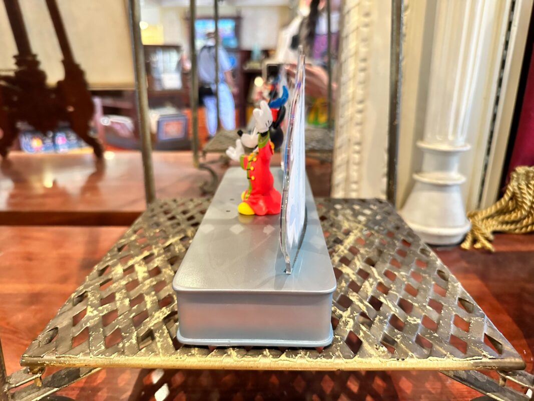 This figure features a sculpted Mickey Mouse in his costume from Walt Disney’s “The Band Concert,” as he stands on a platinum base. “100 Years of Music and Wonder” is printed in purple script on the front of the base.
