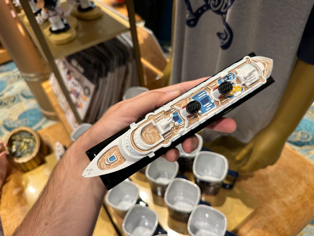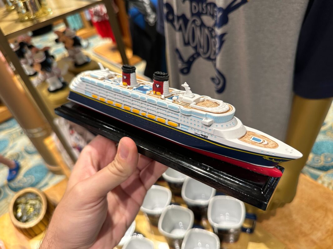 If you immensely enjoyed your voyage aboard the Disney Wonder and do not want to leave, this collectible allows you to bring the ship home with you. This miniature recreation made out of composite wood looks near-identical to the Wonder, right down to the crew pool at the bow.