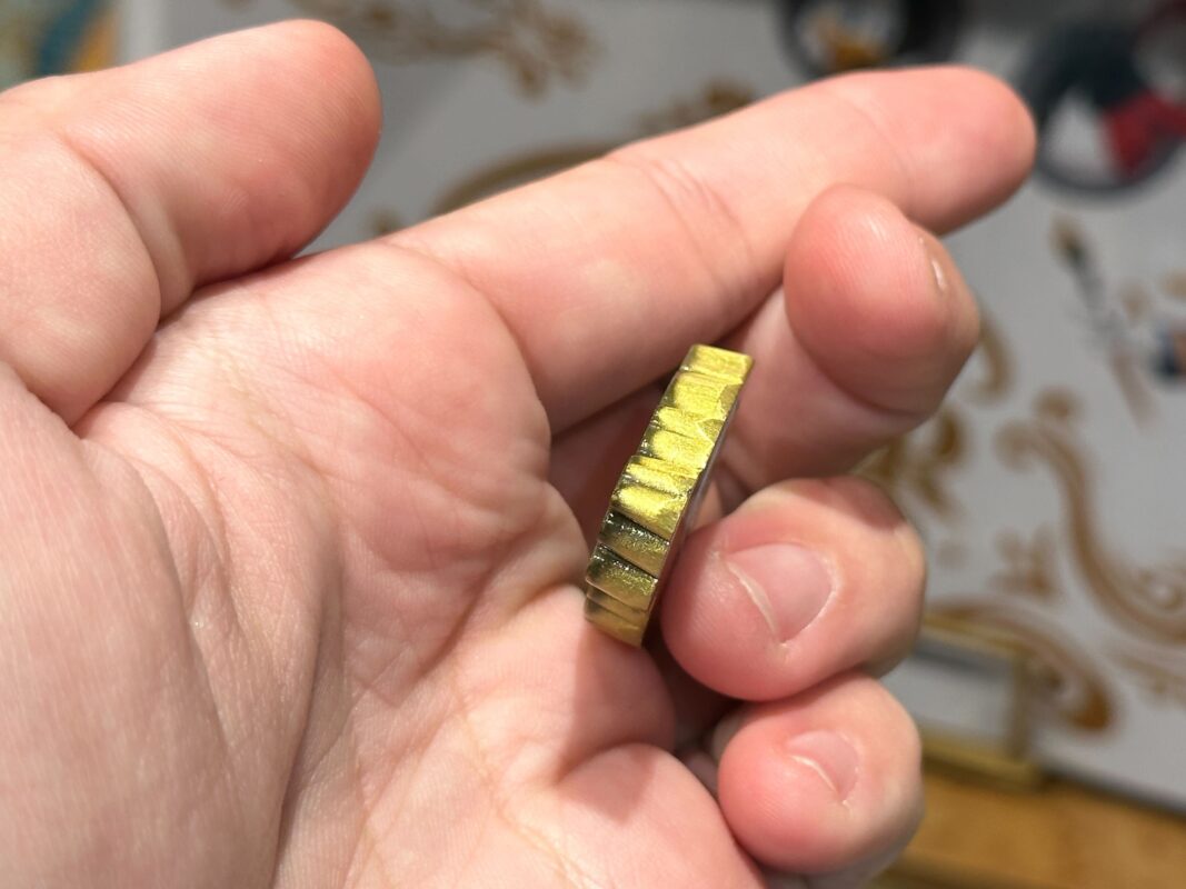 The magnet’s ridged edges give it a bottlecap-like appearance.