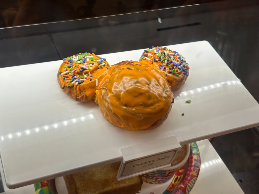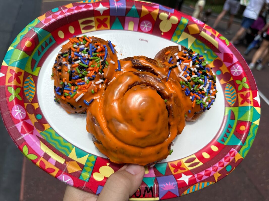 While it sports a different look than the previous few years, this is still a standard Mickey cinnamon roll with colored icing and sprinkles.