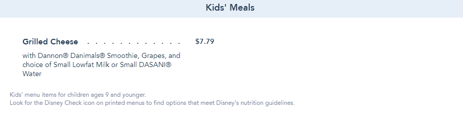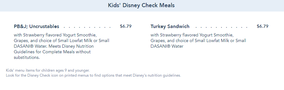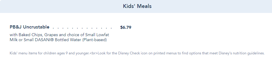 The prices on the menu are a slap in the face. $7 for half a PB&J??? Disney is an absolute joke and while I have visited 5 times in the last 7 years I dont plan on going back.