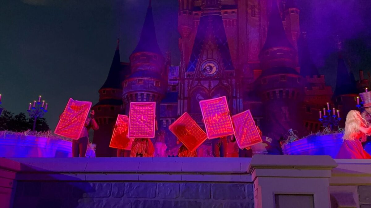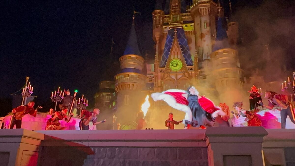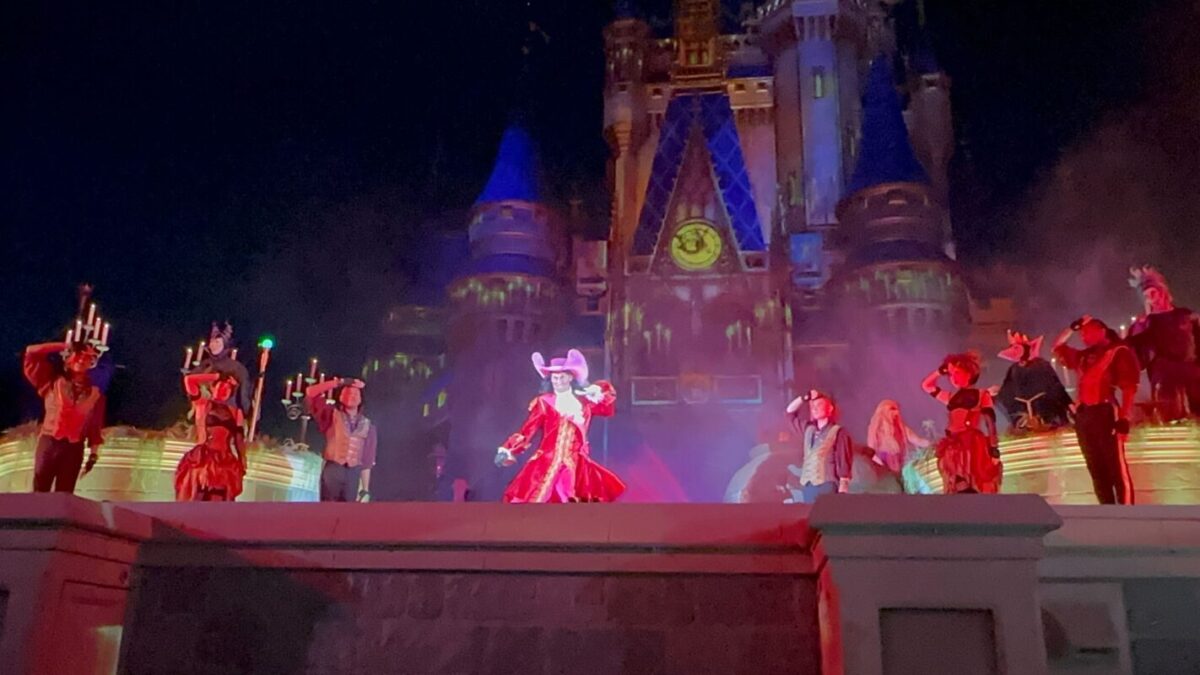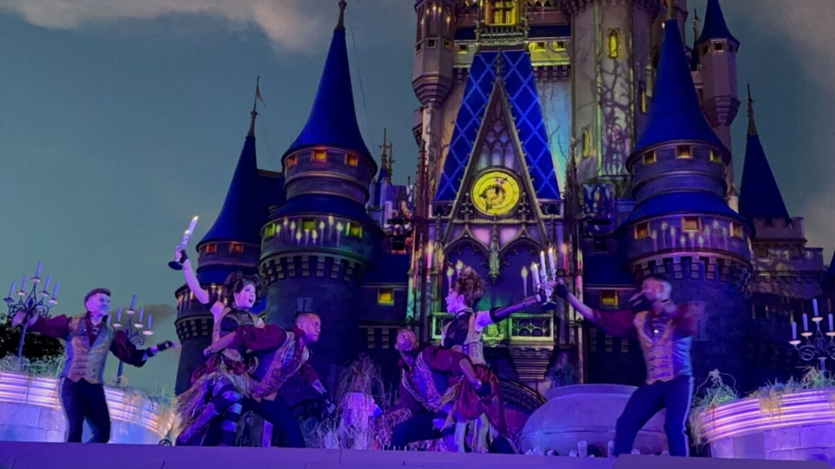 Guests at Mickey’s Not-So-Scary Halloween Party can check out the Hocus Pocus Villain Spelltacular stage show at Cinderella Castle.